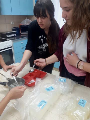 Κατασκευάσαμε σαπούνια και στολίδια για το bazaar τους αλλά κυρίως μοιραστήκαμε χρόνο μαζί με τα “παιδιά” της στέγης. Όπως εύλογα διατύπωσαν οι μαθήτριες την επόμενη ημέρα προς το σύνολο των συμμαθητών τους: