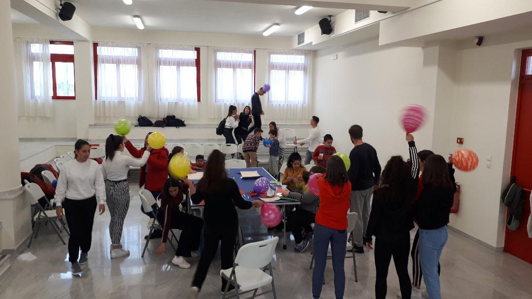 παιδιά του Λυκείου για τους μικρούς φίλους τους.  Πολύχρωμα μπαλόνια απλώθηκαν στην αίθουσα και