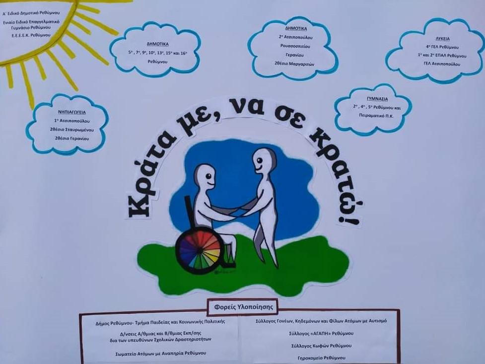 Το «Κράτα με να σε Κρατώ»  θα πραγματοποιηθεί σε 25 σχολεία του Ρεθύμνου κατά τη διάρκεια της χρονιάς.  Δεκάδες μαθητές θα έχουν την ευκαιρία να μάθουν για την αξία της διαφορετικότητας, του σεβασμού και της αποδοχής· Να γνωρίσουν από κοντά άτομα με αναπηρία, να ακούσουν τις εμπειρίες και τις δυσκολίες τους· Να προσπαθήσουν να μπουν στη θέση τους με δράσεις προσομοίωσης για να συνειδητοποιήσουν και να συναισθανθούν· Να συνεργαστούν και να συνδημιουργήσουν με μαθητές από τα ειδικά σχολεία· Και βέβαια να αναλάβουν δράση ως ενεργοί πολίτες για να ενημερώσουν κι αυτοί με τη σειρά τους και να διεκδικήσουν την ισότιμη συνύπαρξη, την ασφαλή κινητικότητα και ελεύθερη προσβασιμότητα όλων στη γειτονιά και την πόλη τους.