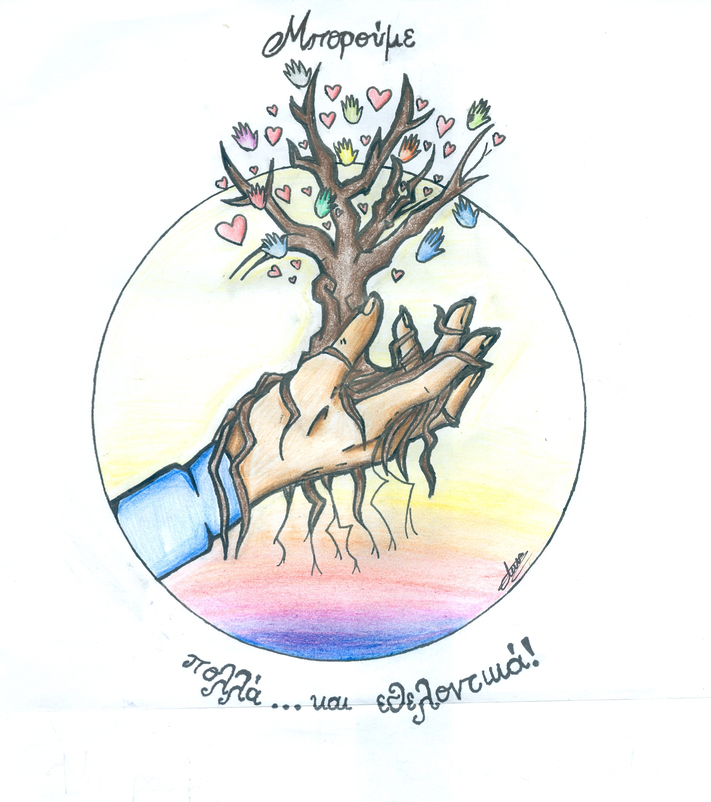 Το εικαστικό αυτό έργο αποτελεί μια προσπάθεια των εθελοντών μαθητών του σχολείου μας να εκφράσουν τα συναισθήματα, τις ιδέες και τις προσδοκίες τους για τις έννοιες του εθελοντισμού, της αλληλεγγύης και της ενεργού πολιτειότητας. Η ζωγραφιά αυτή, η οποία αποτελεί το συμβόλαιο της εθελοντικής ομάδας του σχολείου, προέκυψε μετά από συζητήσεις- αλληλεπιδράσεις των μαθητών κατά τη διάρκεια βιωματικών δραστηριοτήτων. Οι δραστηριότητες προβληματίζουν τους μαθητές σχετικά με τις έννοιες και για το πώς τις βιώνουν στην κοινωνία όπου ζουν. Αποτέλεσμα του εποικοδομητικού αυτού προβληματισμού είναι το περιεκτικό σε νόημα λογότυπο: Μπορούμε πολλά... και εθελοντικά!!!
