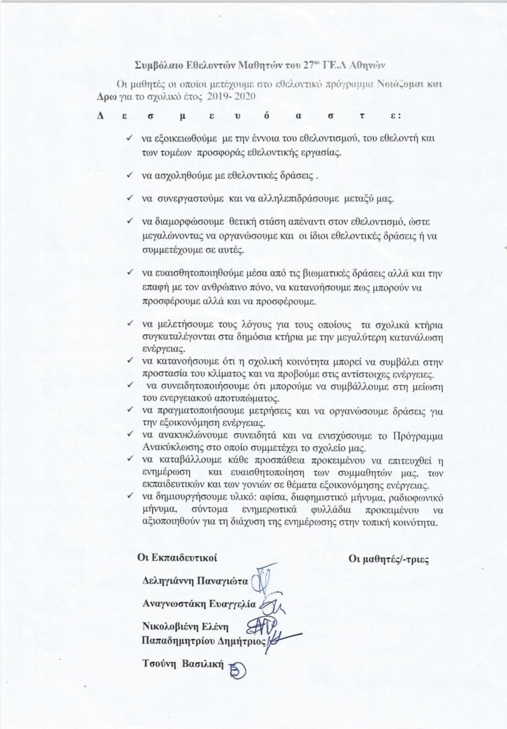 Συμβόλαιο Εθελοντών 27 ΓΕ.Λ Αθηνών