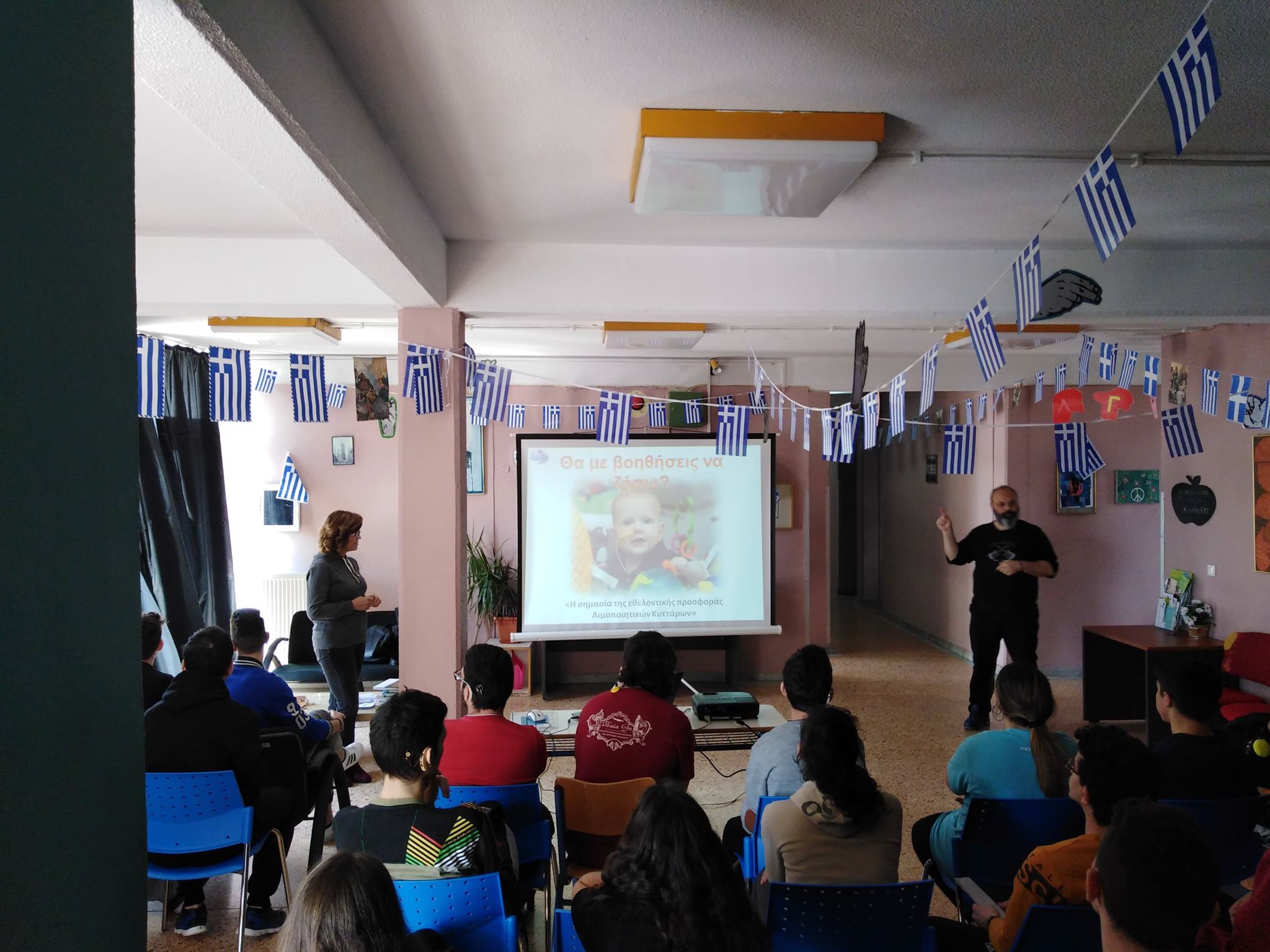 Στο πλαίσιο της ενημέρωσης και ευαισθητοποίησης των μαθητών και του συλλόγου διδασκόντων για τη Δωρεά Μυελού των Οστών, επισκέφτηκε το σχολείο μας η κ. Δήμητρα Ζαχαρούδη, συντονίστρια του τμήματος μεταμοσχεύσεων του νοσοκομείου ΑΧΕΠΑ. Μας ενημέρωσε για την αναγκαιότητα και τη διαδικασία της δωρεάς, με παράλληλη διερμηνεία στην Ελληνική Νοηματική Γλώσσα, και απάντησε στις ποικίλες ερωτήσεις των μαθητών που έδειξαν ιδιαίτερο ενδιαφέρον. Στη συνέχεια, παρακολουθήσαμε animation video για τη Δωρεά Μυελού των Οστών καθώς και Video με αληθινές ιστορίες που εκτυλίχτηκαν μεταξύ δωρητών και ληπτών.