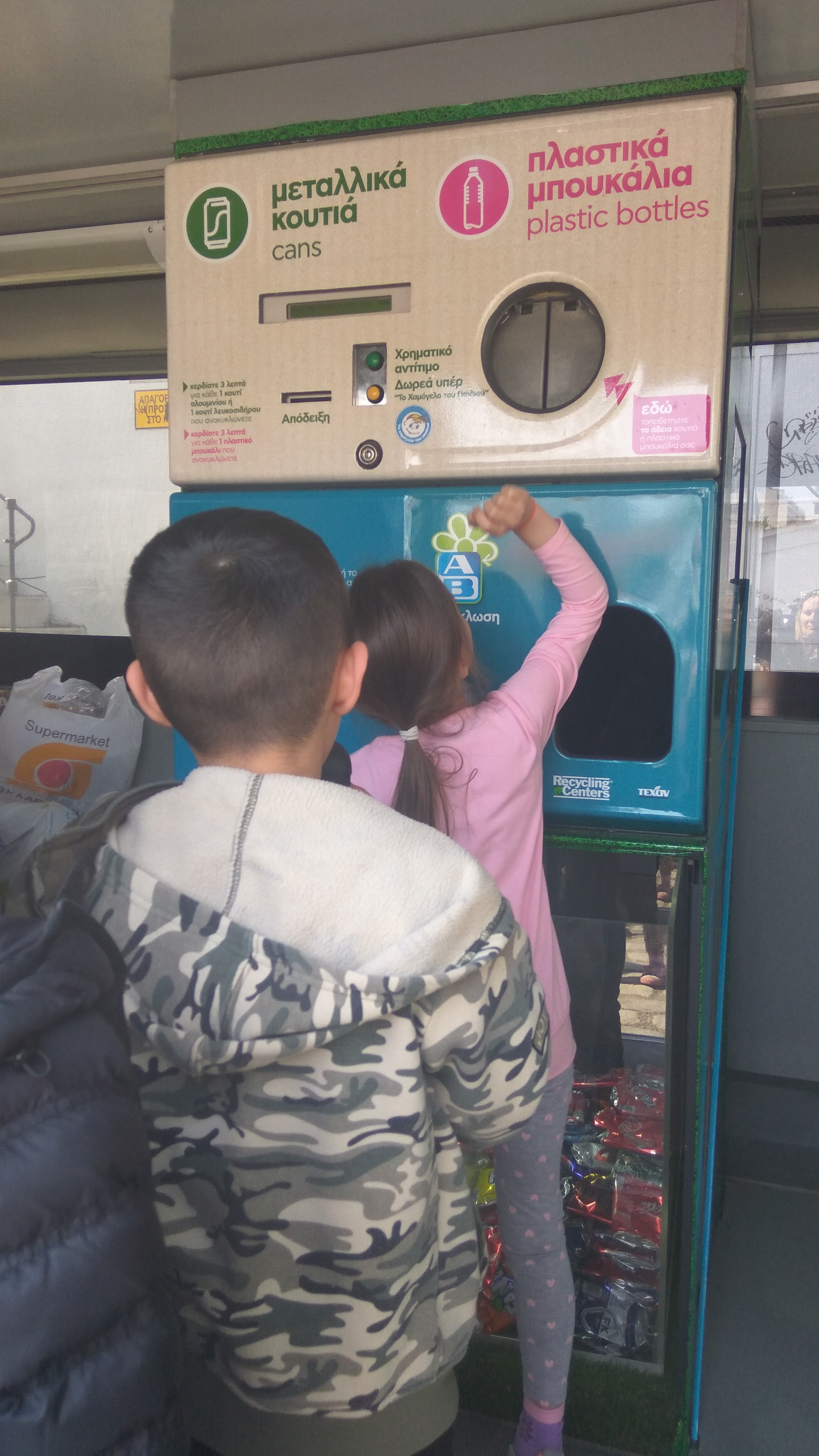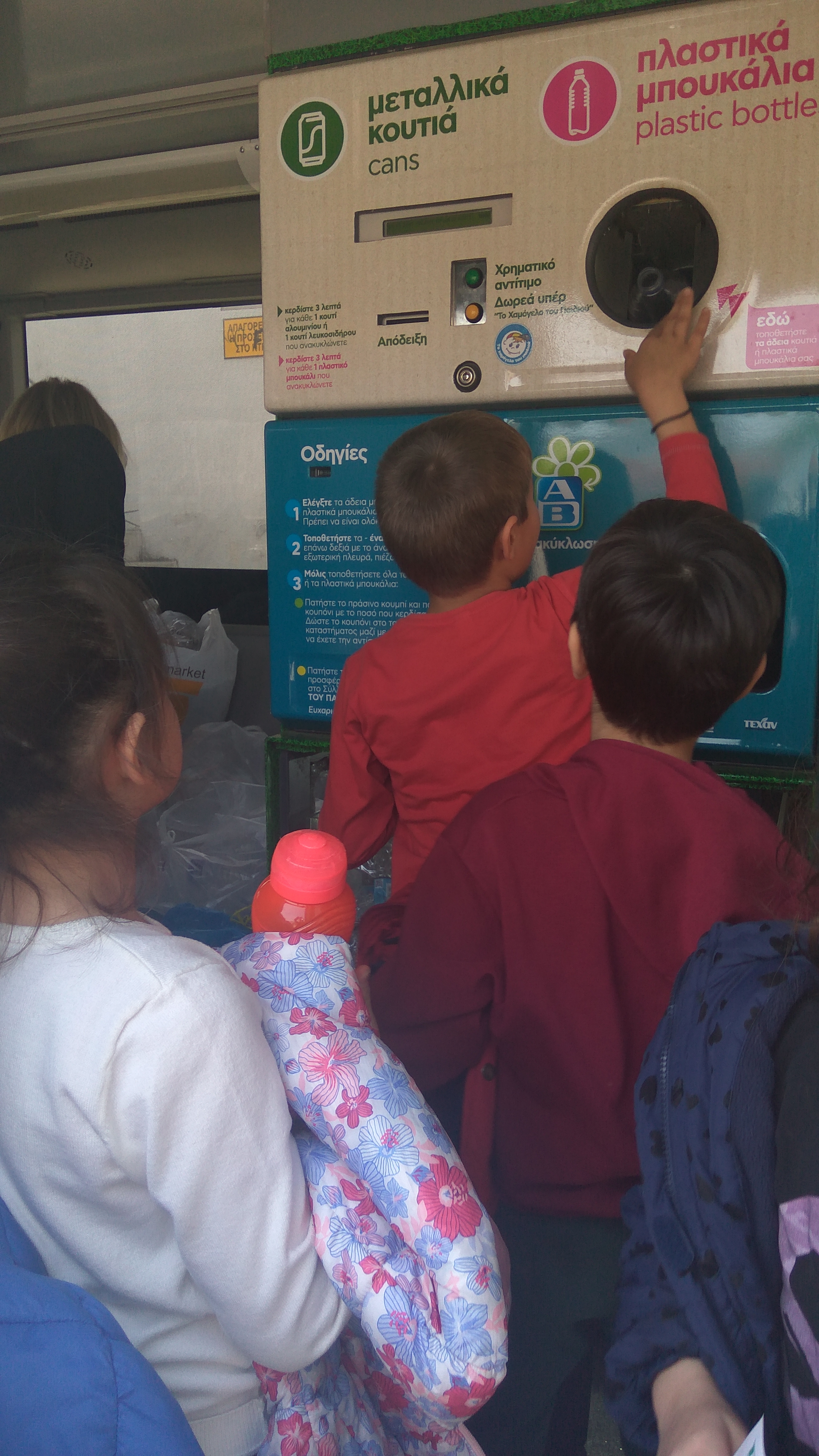 Πριν λίγες μέρες επισκεφθήκαμε την κινητή μονάδα ανακύκλωσης στο λιμάνι της πόλης μας. Μαζί μας ήταν και οι μαθητές της Β΄, Ε΄ και ΣΤ΄ τάξης. Είχαμε ήδη συγκεντρώσει έναν ικανό αριθμό πλαστικών μπουκαλιών νερού και μεταλλικών κουτιών αναψυκτικού όπως μας είχε ζητηθεί. Αφού παρακολουθήσαμε ένα ημίωρο σεμινάριο για την ανακύκλωση και τη σπουδαιότητά της, ανακυκλώσαμε ένας-ένας και τις συσκευασίες που είχαμε φέρει. Νιώσαμε μεγάλη χαρά και ικανοποίηση που βάλαμε κι εμείς άλλο ένα μικρό λιθαράκι στη μεγάλη προσπάθεια της προστασίας του περιβάλλοντος! Να σημειώσουμε ότι ο κάδος ανακύκλωσης της τάξης μας παραμένει καθημερινά ενεργός!