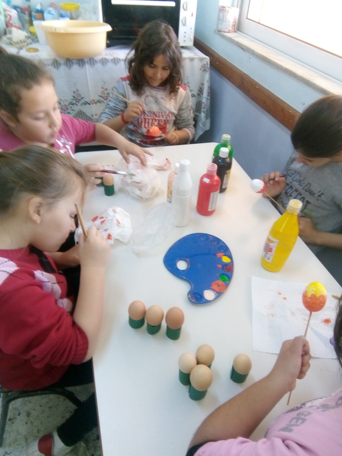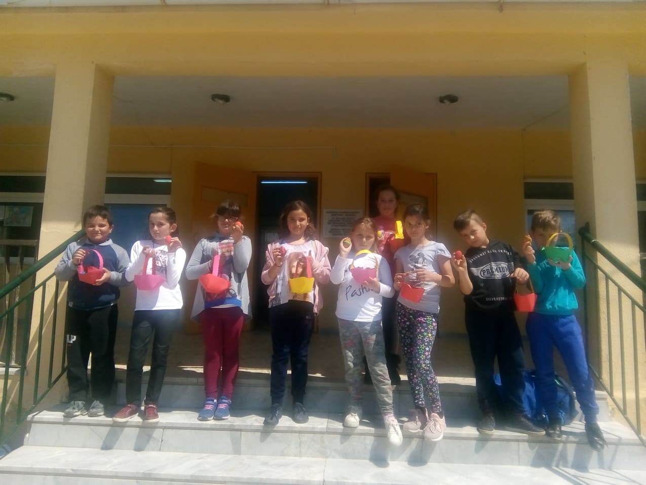 Με αφορμή το Πάσχα οι μαθητές της Γ΄-Δ΄Τάξης με τη δασκάλα τους έφτιαξαν λαμπάδες ,έβαψαν αυγά , έπλασαν κουλουράκια και έφτιαξαν καλαθάκια για να τα κάνουν δώρο στον εαυτό τους.Οι περισσότεροι μαθητές είναι αλλοδαποί γι αυτό έγιναν νονοί στον εαυτό τους .Τα κουλουράκια τα πρόσφεραν στους μαθητές των άλλων τάξεων που έρχονταν να μας πουν τα κάλαντα του Λαζάρου παρέα με τη δασκάλα της μουσικής.