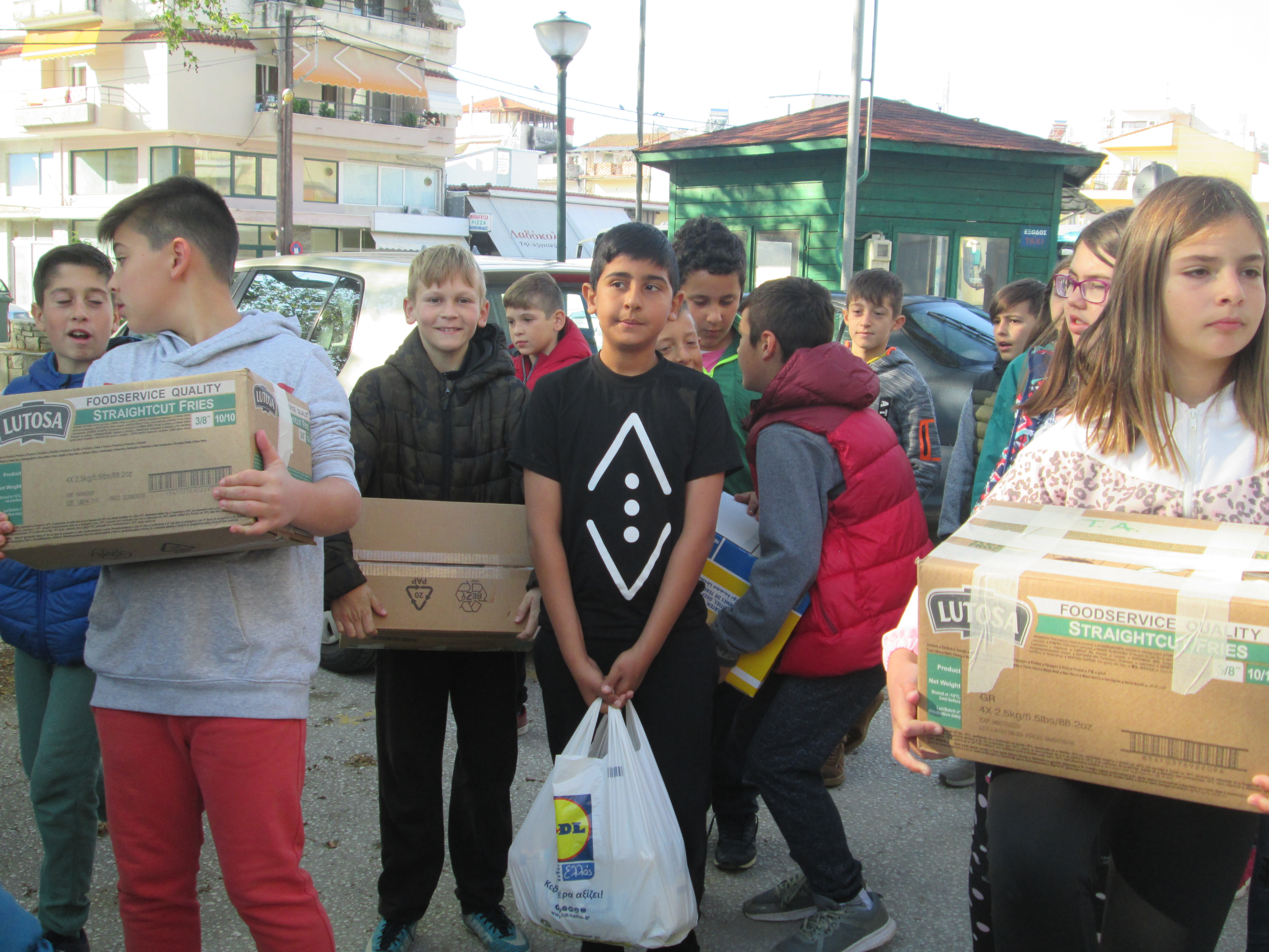αγίου Δημητρίου.  Οι μαθητές προσφέρουν τρόφιμα