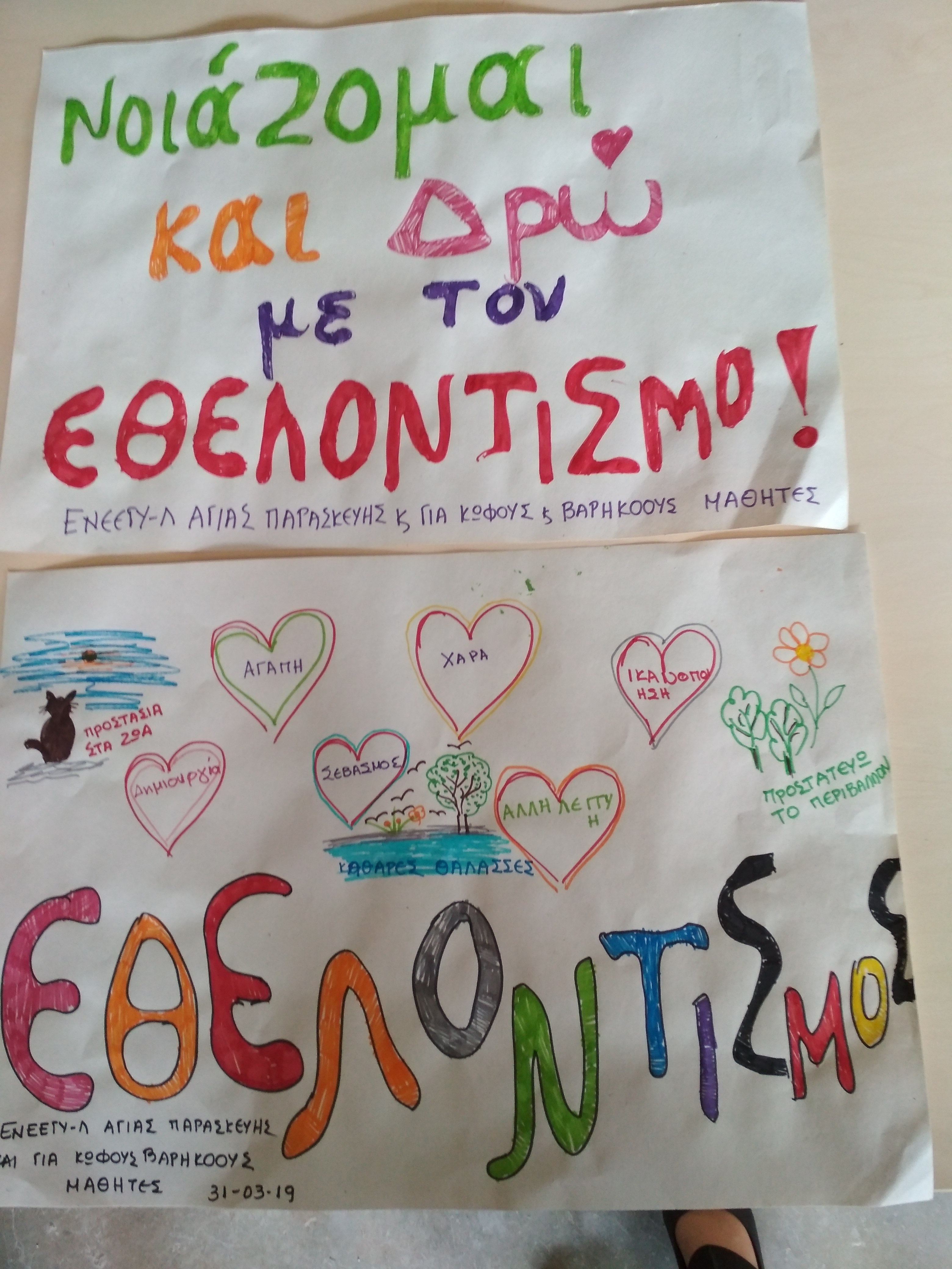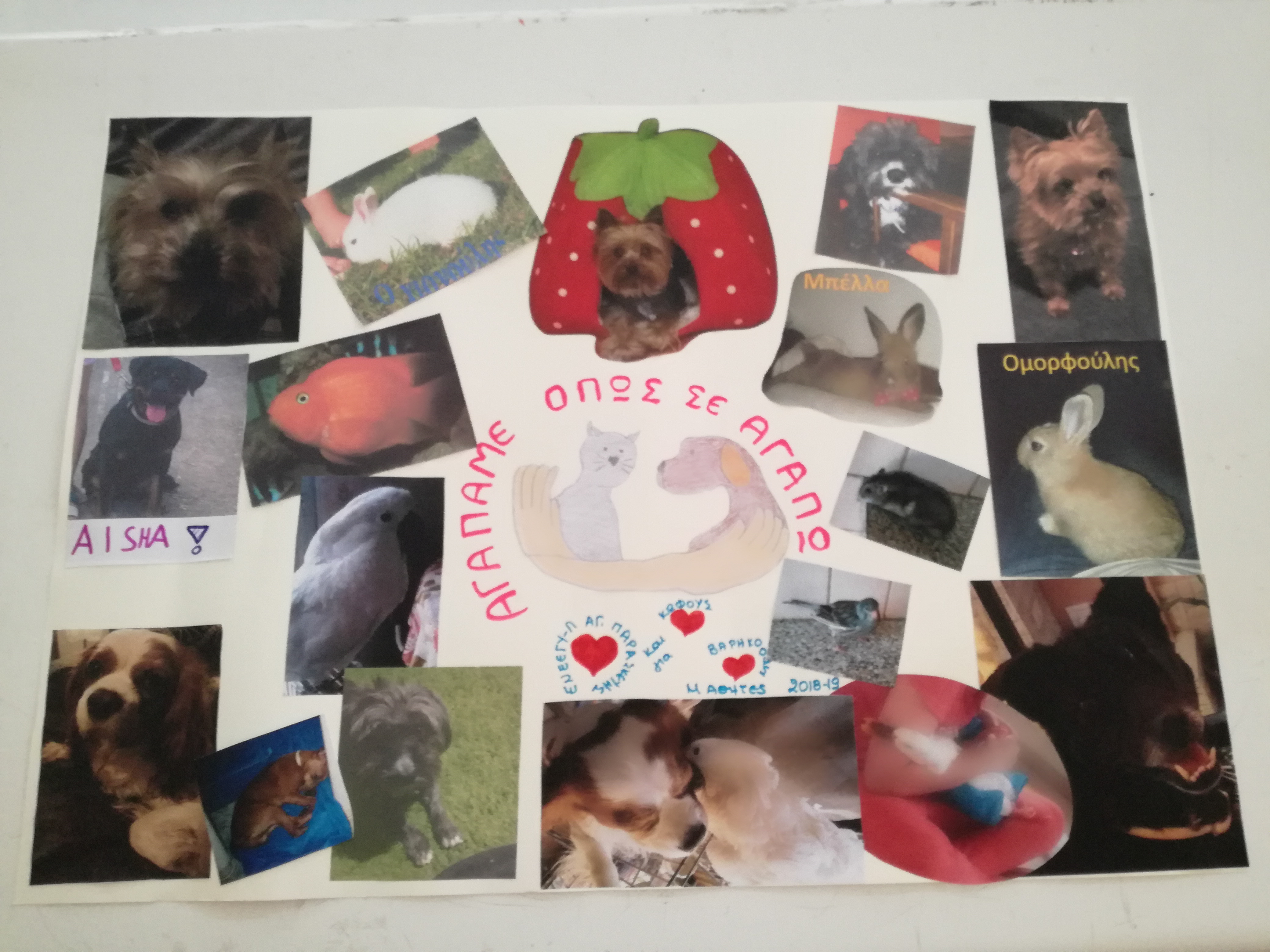 Προβλήθηκαν βίντεο σχετικά με την κακοποίηση των ζώων, ακολούθησε συζήτηση και κατάθεση απόψεων των μαθητών σχετικές με την υιοθεσία των ζώων και φιλοτεχνήθηκε αφίσα με τα κατοικίδια των μαθητών και εκπαιδευτικών και με το μήνυμα της αγάπης στα ζώα, με υπεύθυνη την Διευθύντρια του σχολείου κυρία Μ. Χαϊκάλη, την εκπαιδευτικό κυρία Ελένη Πιστολά και την κυρία Βάσια Αγγελή.