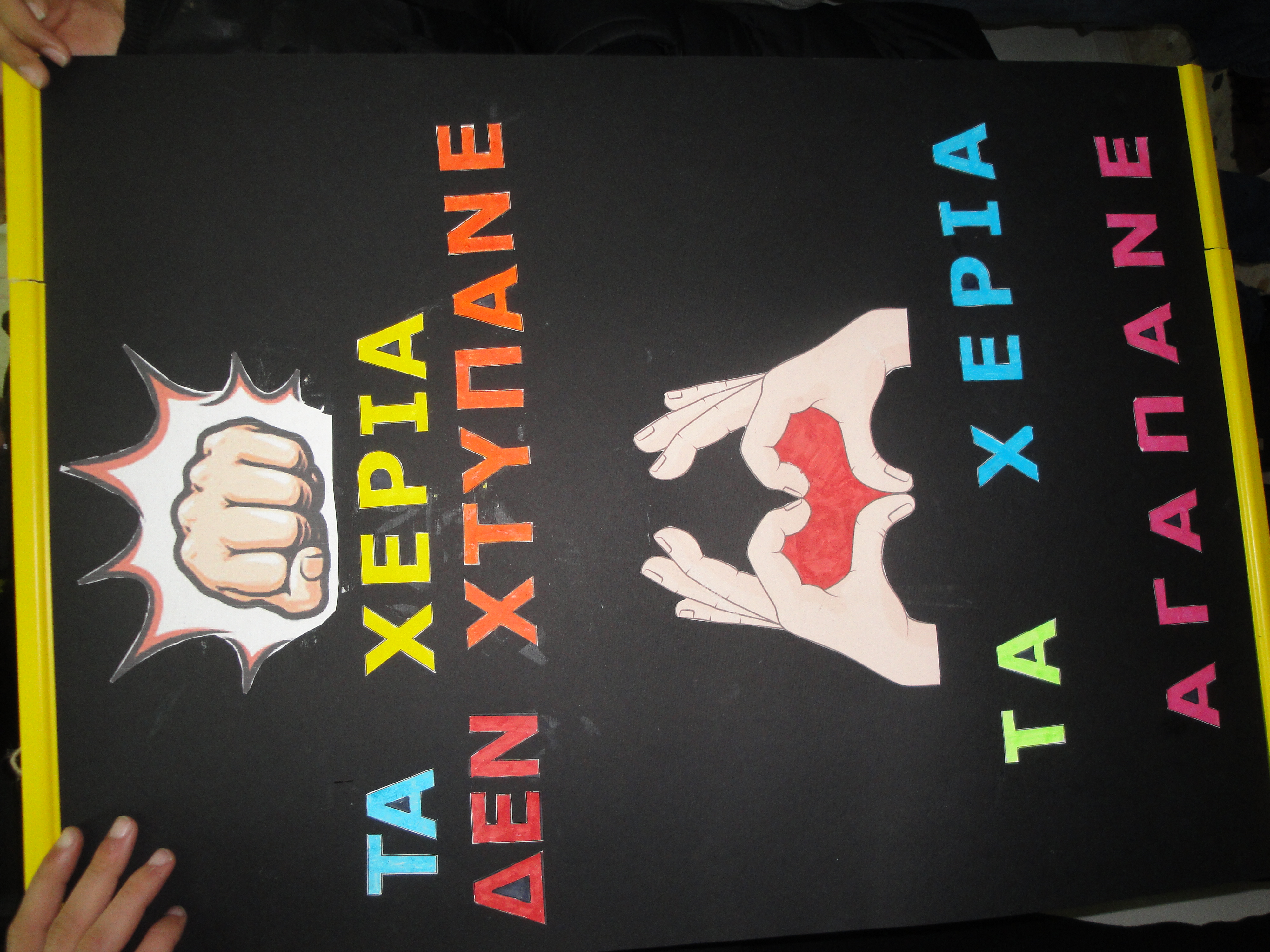 «νοηματική γλώσσα» τις οποίες τοποθέτησαν σε χώρους του σχολείου με σκοπό την συνεχή ενημέρωση των