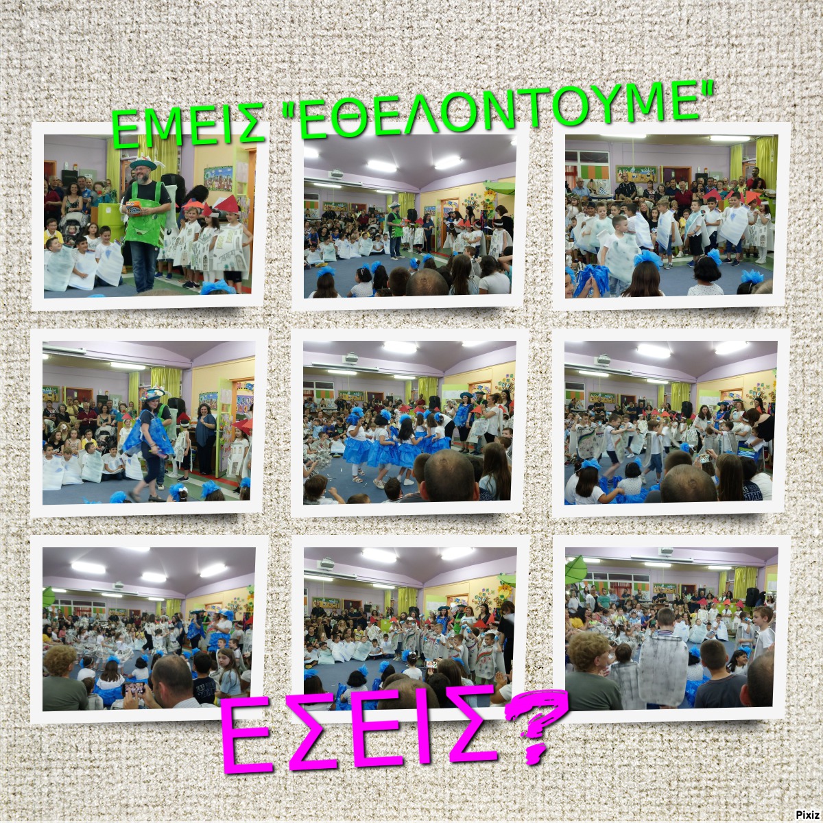 Δημιουργία θεατρικής παράστασης από γονείς εκπαιδευτικούς και μαθητές με σκοπό την διάδοση του μηνύματος της ανακύκλωσης παράλληλα με την συγκέντρωση πόρων για την βοήθεια ατόμων, ομάδων ή οργανισμών .
