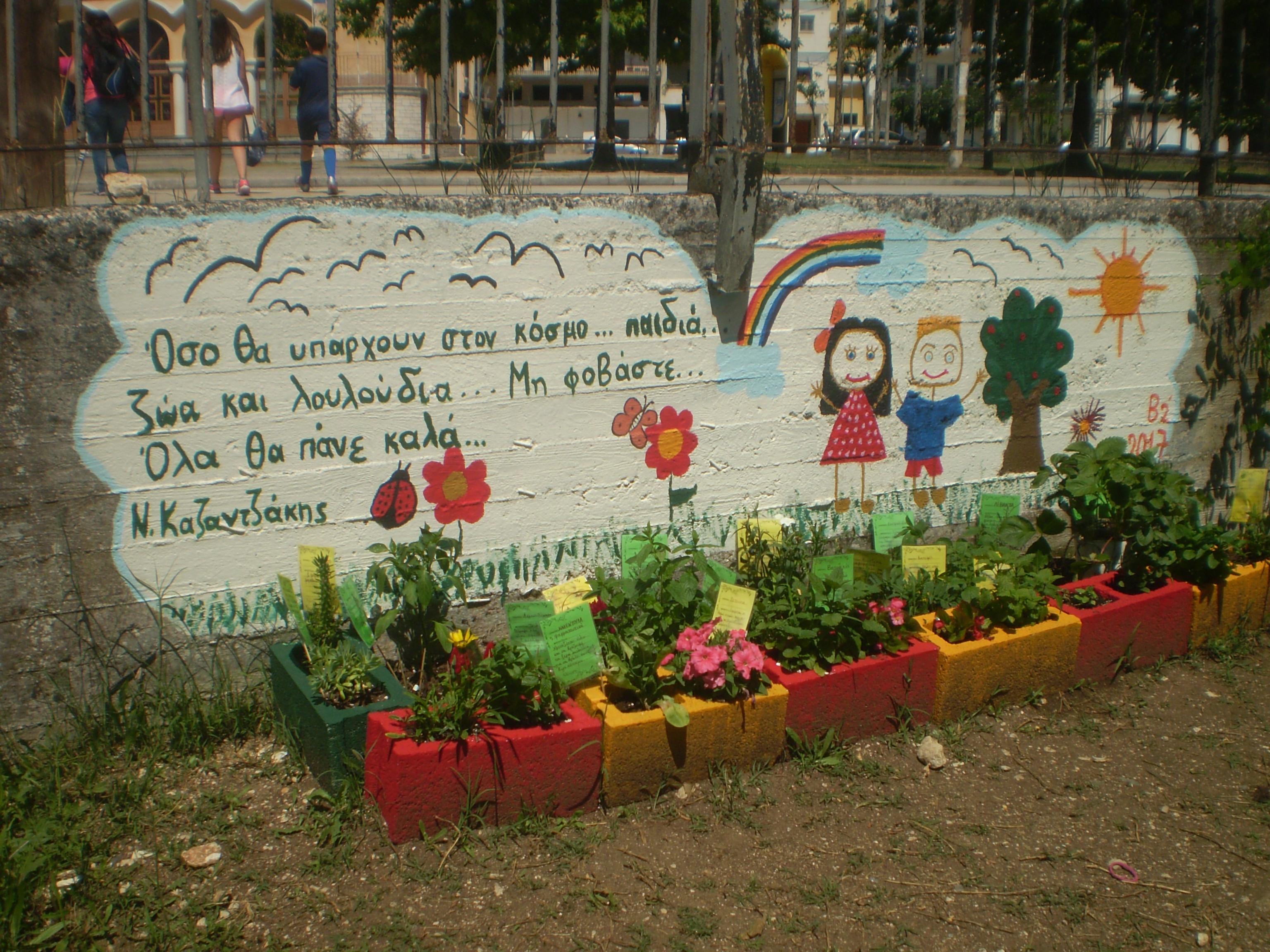 και φέτος με το παρτέρι στην αυλή του σχολείου μας. Ξεριζώσαμε τα αγριόχορτα,
