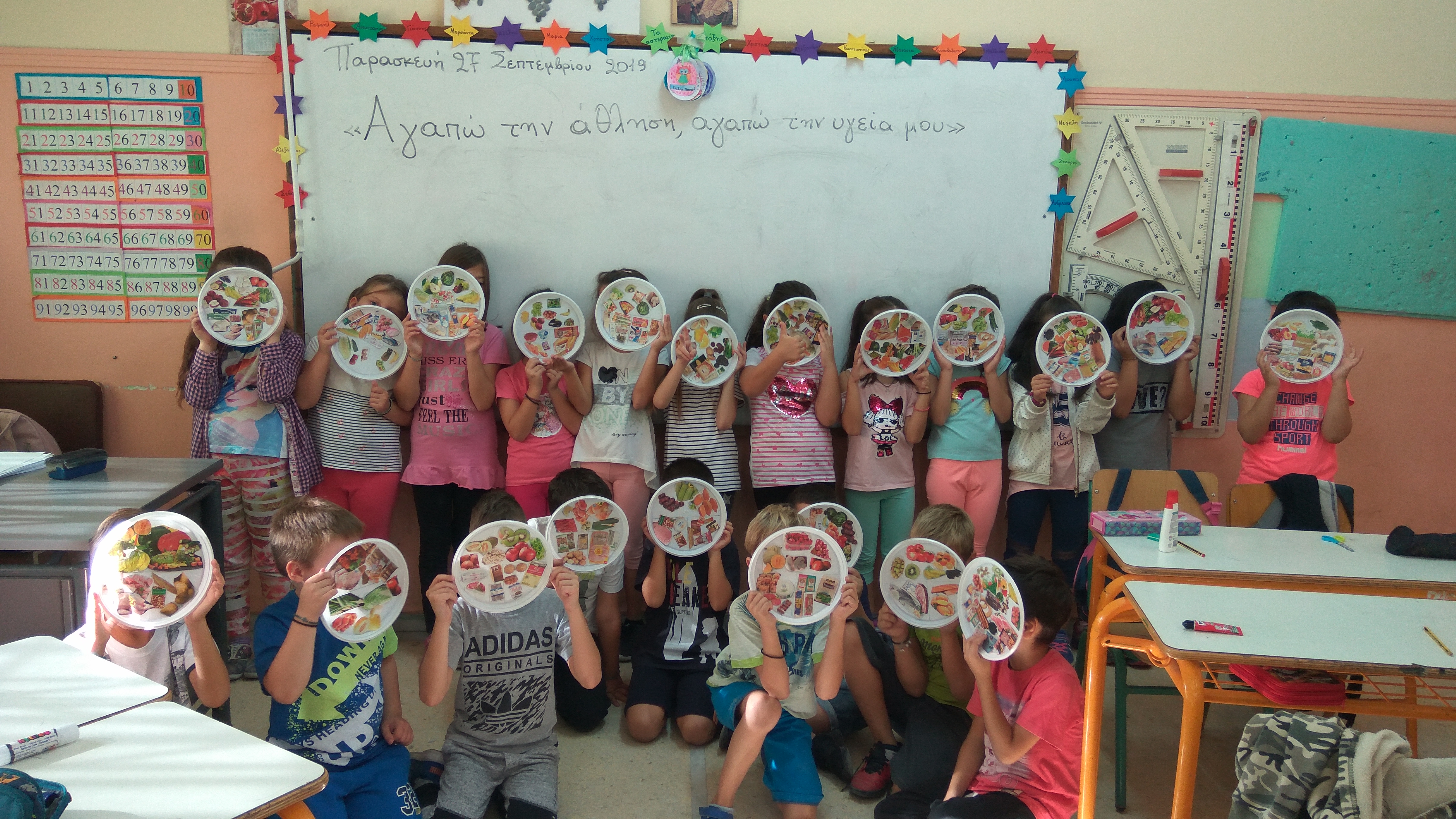 Στα πλαίσια του εορτασμού της Πανελλήνιας Ημέρας Σχολικού Αθλητισμού και με σύνθημα< Αγαπώ την άθληση-Αγαπώ την υγεία μου> οι μαθητές της Α΄ τάξης αφού συζήτησαν για τα ευεργετικά οφέλη του συνδυασμού σωματικής άσκησης και υγιεινής διατροφής κατασκεύασαν το πιάτο της υγιεινής διατροφής. Παρακολούθησαν επίσης σχετικά βίντεο και συνέχισαν λύνοντας κρυπτόλεξα και ακροστιχίδες. Τέλος με ιδιαίτερο ενθουσιασμό συμμετείχαν σε οργανωμένες αθλητικές δράσεις εντός του σχολείου. Στόχος μας ήταν και παραμένει ν΄ αποκτήσουν οι μαθητές μας έναν υγιή τρόπο ζωής!