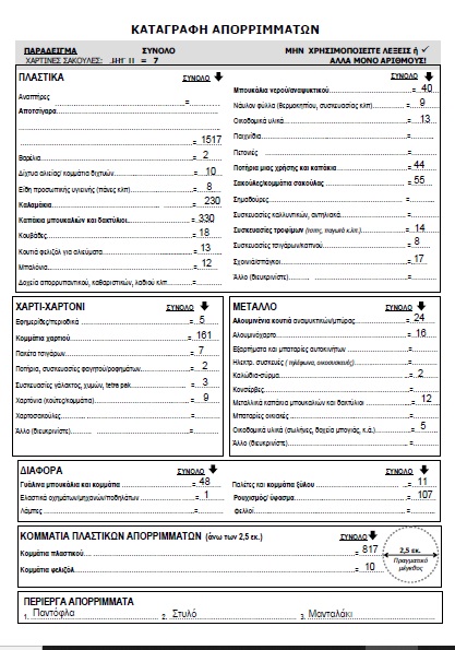 ειδών τα οποία καταγράψαμε στο ειδικό Δελτίο Καταγραφής Απορριμμάτων. Η