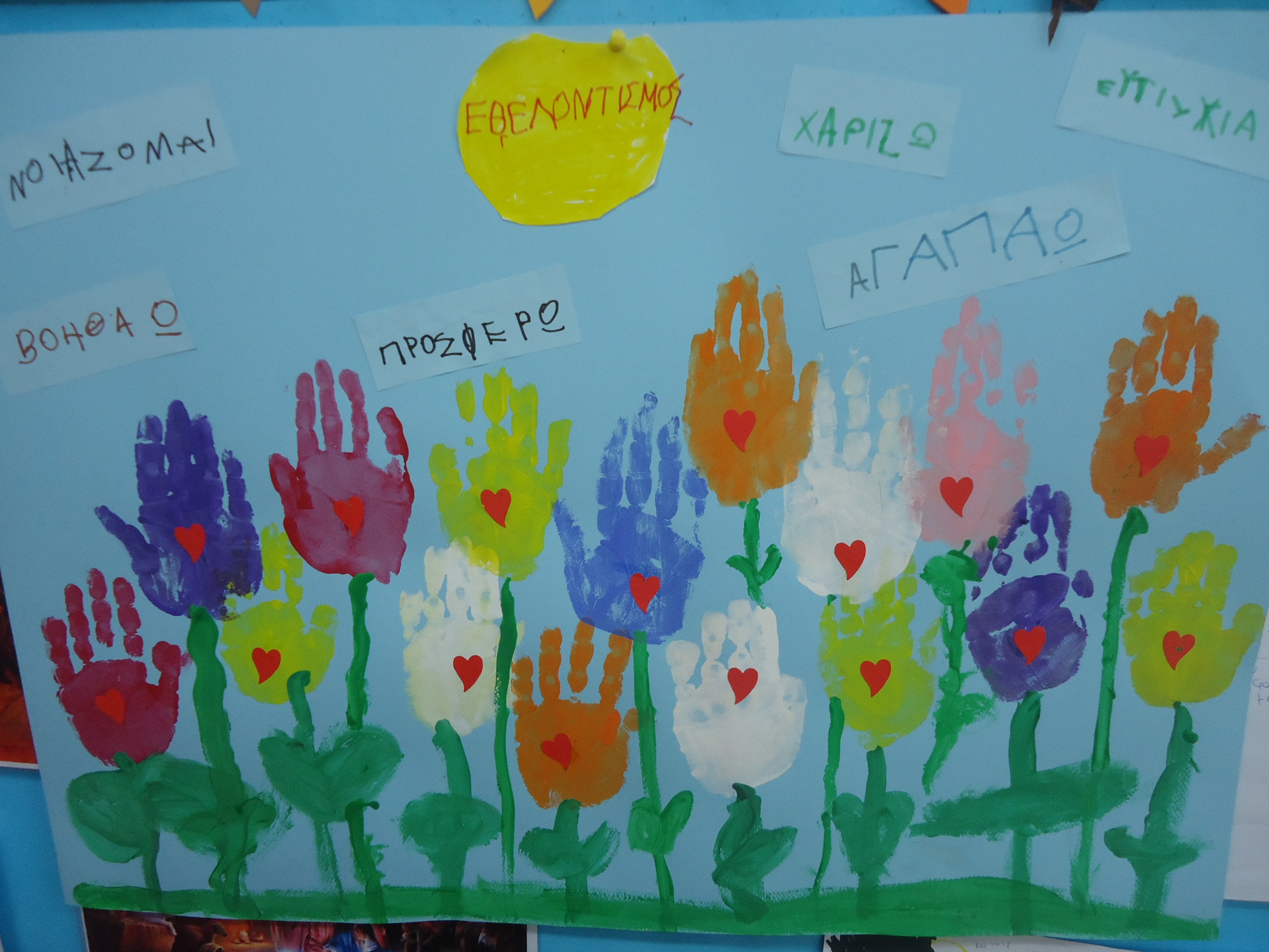 Με αφορμή την παγκόσμια ημέρα εθελοντισμού (5 Δεκεμβρίου) τα παιδιά μίλησαν για τον εθελοντισμό και τον παρομοίασαν σαν ένα λιβάδι με πολύχρωμα λουλούδια που εμπλουτίζεται από τα σποράκια που πέφτουν συνεχώς στο χώμα. Αυτό αποτέλεσε και το συμβόλαιο του εθελοντή για την ομάδα μας.