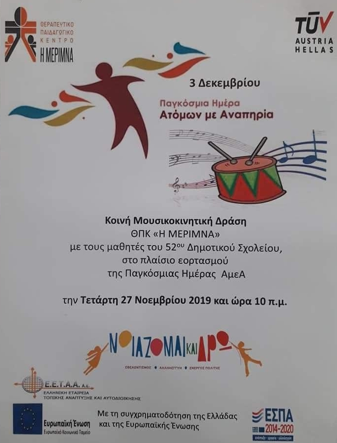 Παγκόσμια ημέρα ΑμεΑ: Κοινή εκδήλωση με το Θ.Π.Κ. "Η Μέριμνα"