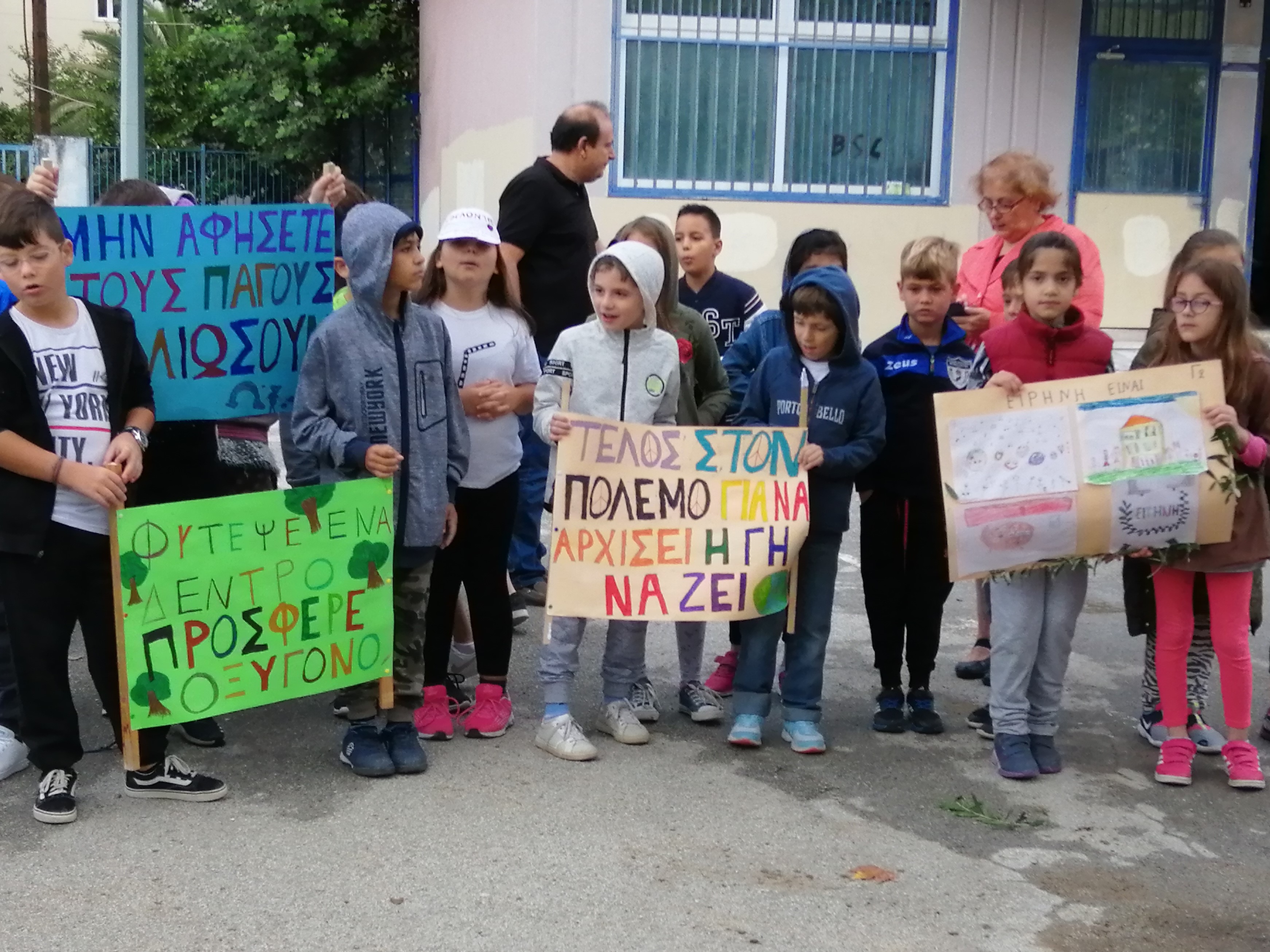 Όλες οι τάξεις παρουσίασαν δράσεις σχετικές με την ελιά και την ειρήνη αλλά δεν έλειψε και η αγγλική πινελιά με πανό που έφτιαξαν οι μαθητές της Ε' καθώς και με ένα τραγούδι που τραγούδησαν και χόρεψαν οι μαθητές της Δ' τάξης.