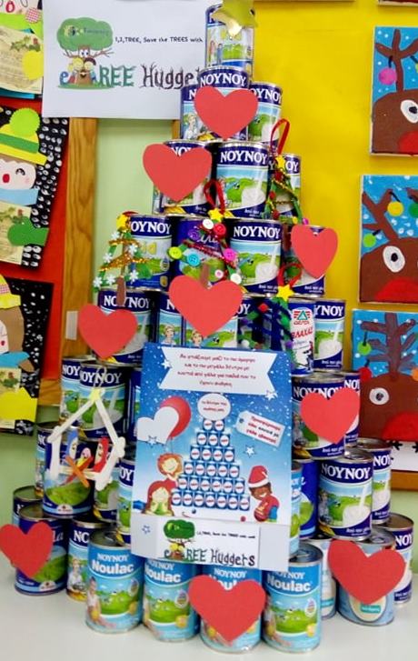 Το δέντρο αυτό ήταν φτιαγμένο από γάλατα εβαπορέ που συγκεντρώσαμε με τη βοήθεια των γονιών μας και όχι μόνο!