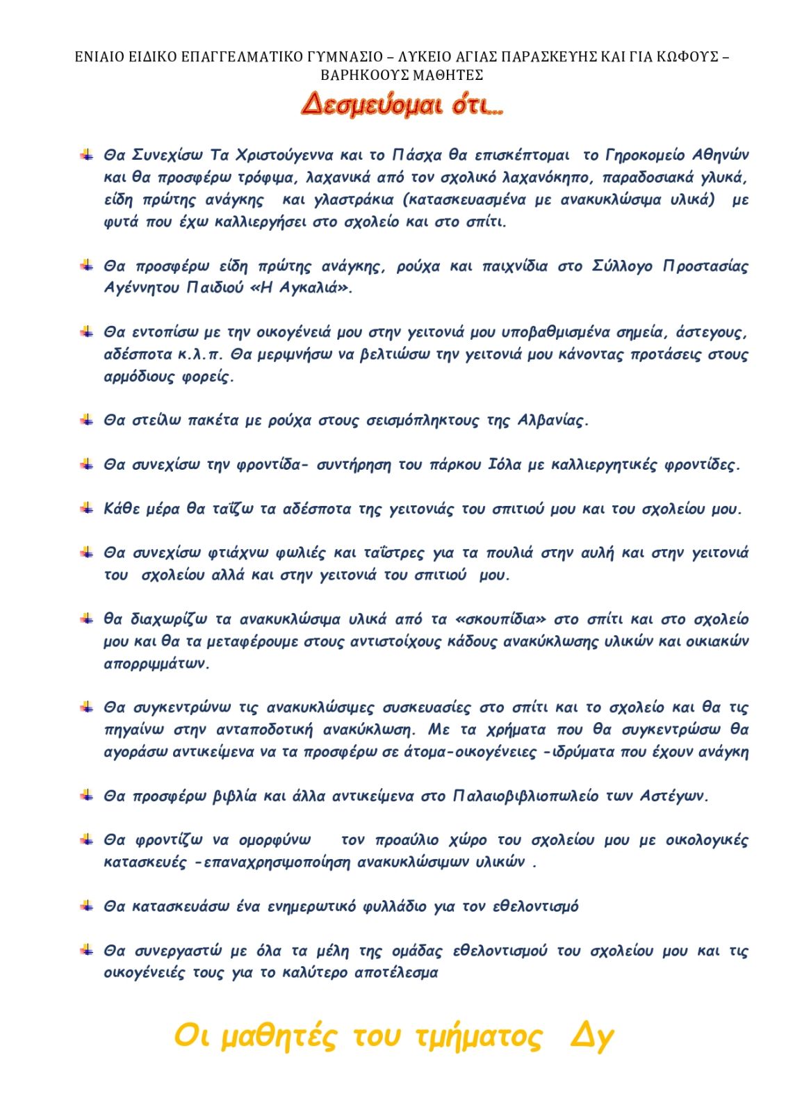 ΣΥΝΒΟΛΑΙΟ ΕΘΕΛΟΝΤΗ ΤΜΗΜΑΤΟΣ Δγ