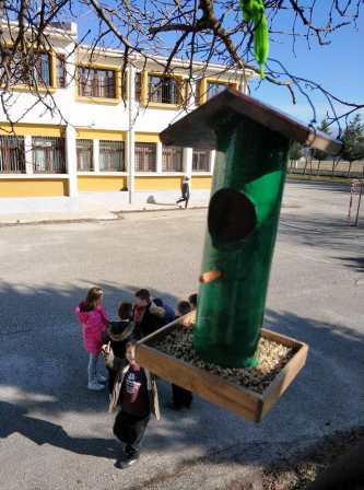βοήθεια της δασκάλας τους και των γονέων τους έφτιαξαν ταΐστρες πουλιών. Στη