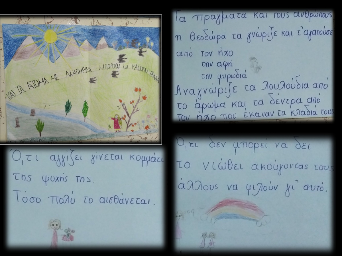 Οι μαθητές των μεγαλύτερων τάξεων διάβασαν «Το παραμύθι της μουσικής» της Βασιλικής  Νευροκοπλή.  Μια φορά κι έναν καιρό στη Μαρώνεια της Θράκης γεννιέται η Θεοδώρα ένα κορίτσι διαφορετικό από τα άλλα. Η διαφορετικότητα της ξεκινά από το γεγονός ότι είναι τυφλή, Αυτό την κάνει να αισθάνεται τον κόσμο με τρόπο μοναδικό μέσα από τις άλλες της αισθήσεις και, κυρίως, από την ακοή. Δημιουργήθηκε κλίμα προβληματισμού στην τάξη.