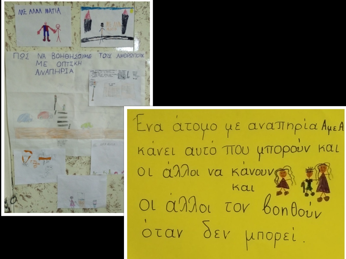 Επειδή η επαφή με άτομα με αναπηρία είναι η πιο αποτελεσματική μέθοδος προκειμένου να μειωθούν οι προκαταλήψεις και τα στερεότυπα και να δημιουργηθούν θετικές στάσεις απέναντι στην αναπηρία, προσκαλέσαμε στο σχολείο μας τον Έλληνα Ολυμπιονίκη αθλητή του Τζούντο Θεόκλητο Παπαχρήστο και τον προπονητή του Κωνσταντίν Ατανάσοβ-Σκούτα. Έτσι,  δόθηκε η ευκαιρία στους μαθητές μας να έρθουν σε επαφή και να αλληλεπιδράσουν με άτομο που βιώνει το ίδιο στην καθημερινότητά του την τύφλωση.