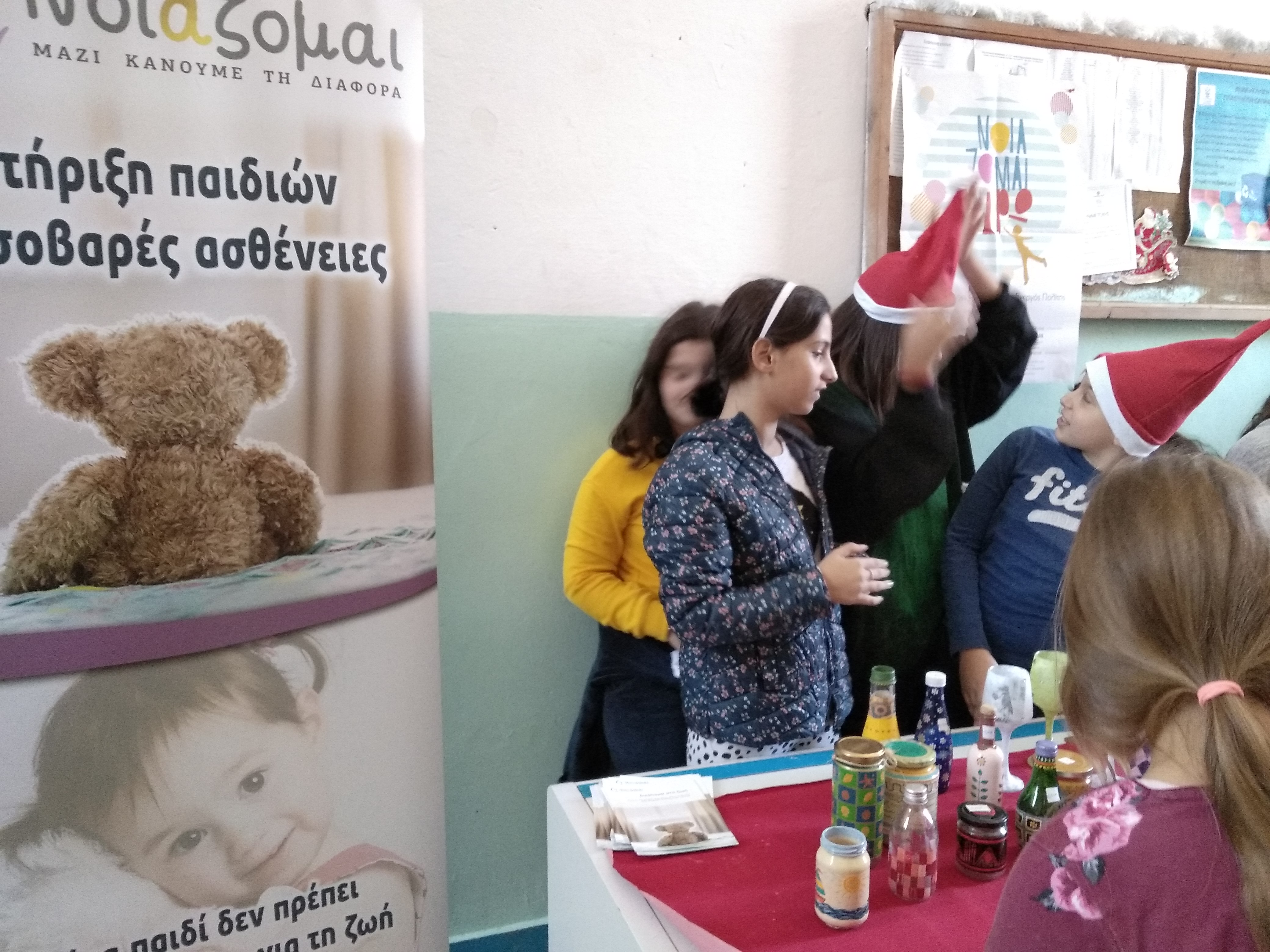 Τα παιδιά των τάξεων Δ1, Δ2, Ε1 και Ε2 τα προσέφεραν τα παραπάνω σε συμβολική τιμή και τα έσοδα θα προσφέρθηκαν  στο φιλανθρωπικό σωματείο Care - Νοιάζομαι!