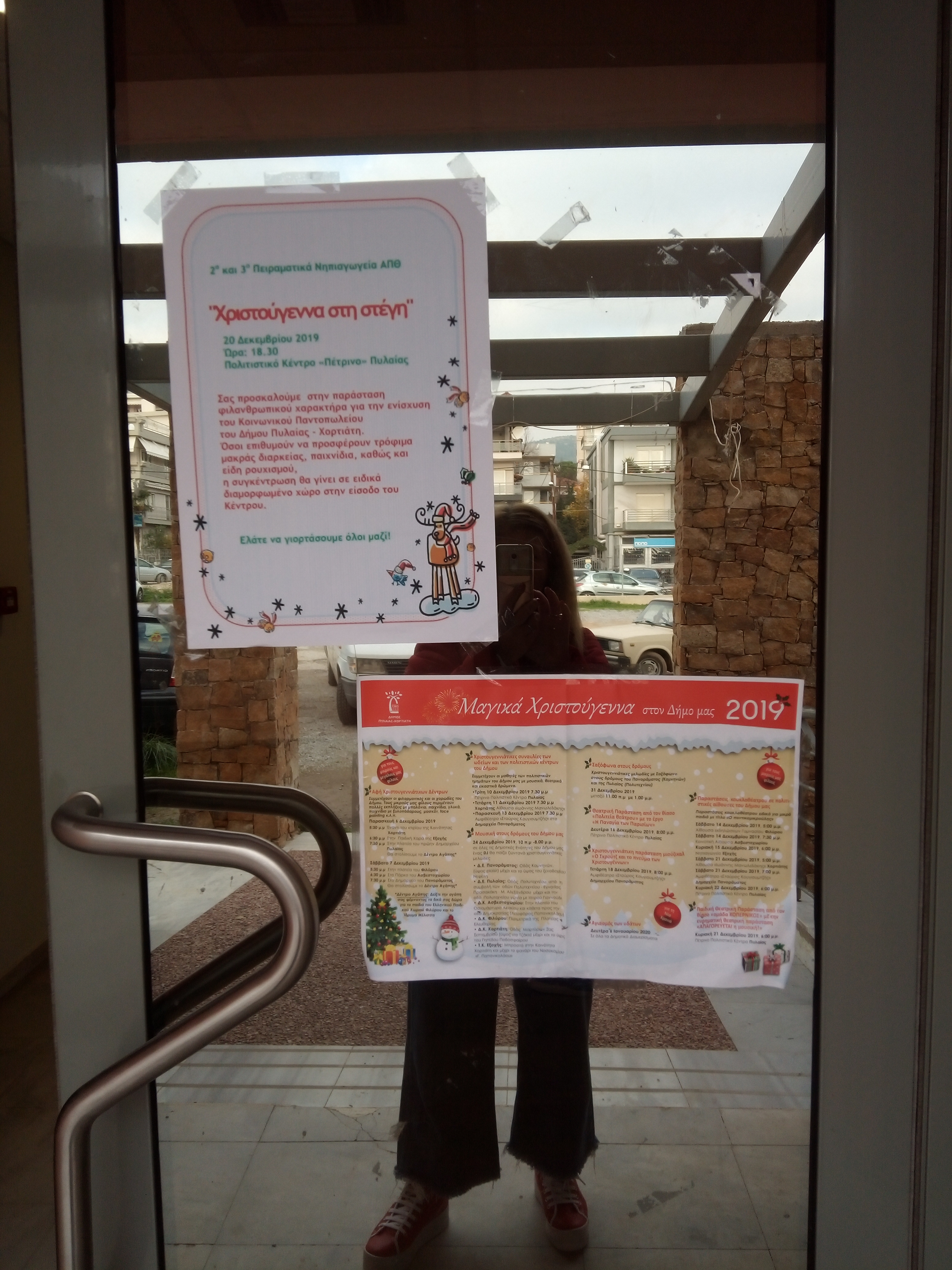 Κοινοποίηση με αφίσα της χριστουγεννιάτικης φιλανθρωπικής εκδήλωσης του σχολείου στην τοπική κοινότητα