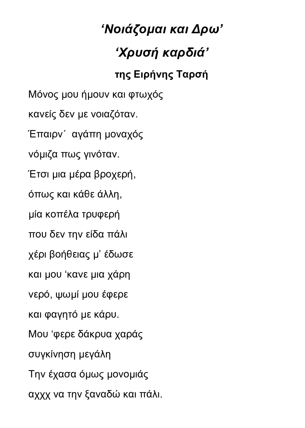 Ένα ποίημα της μαθήτριας της Α τάξης, Ειρήνη Τσαρσή. Μια μικρή ποιήτρια με χρυσή καρδιά!