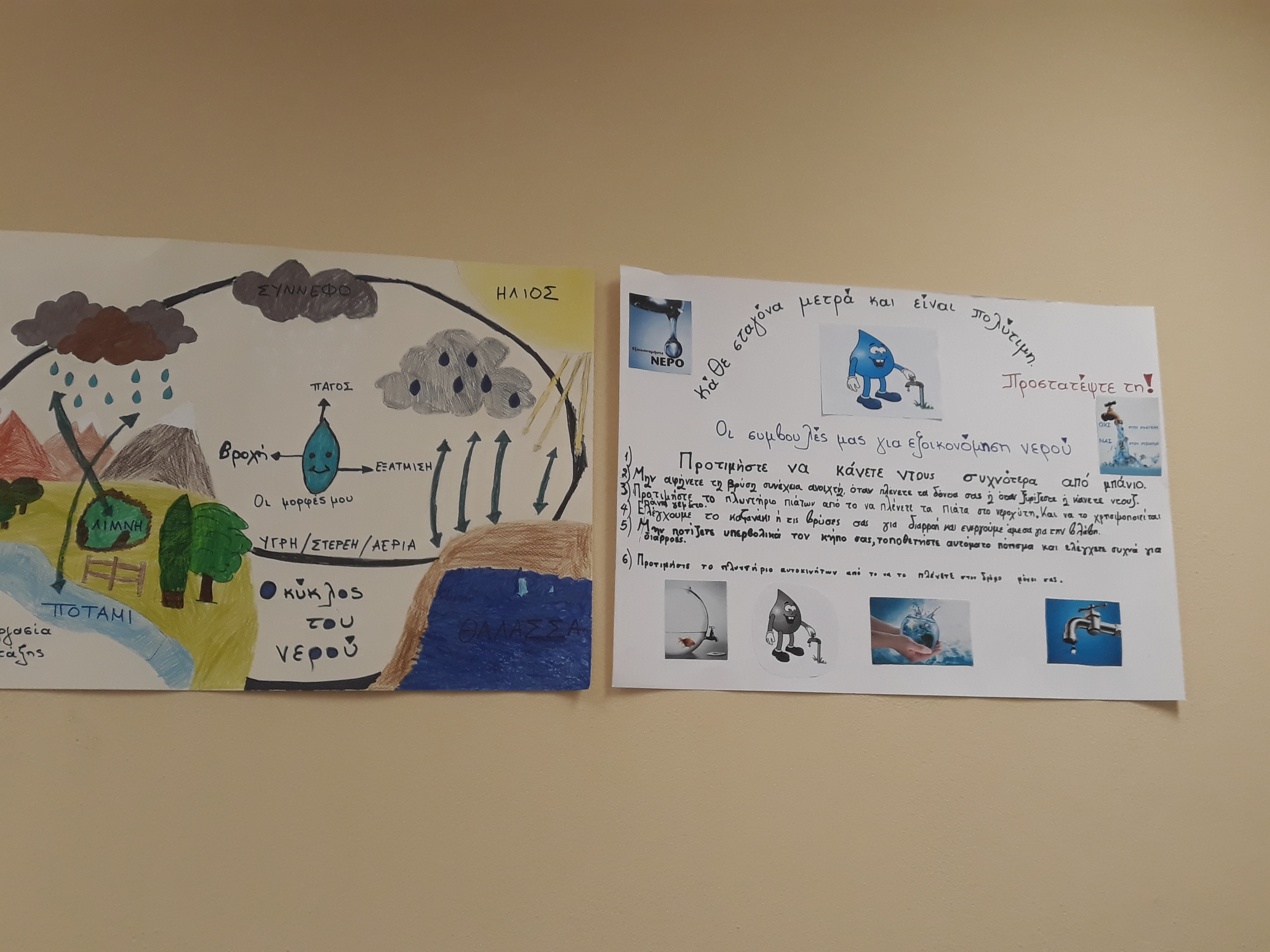 Ξεκινήσαμε αντλώντας πληροφορίες, με τη χρήση του διαδικτύου, για τον κύκλο του νερού και κατόπιν έγινε μια ομαδική ζωγραφιά. Έπειτα καταγράφηκαν οι ποικίλες χρήσεις του, τα αίτια που οδηγούν στη μόλυνσή του και οι τρόποι για την αποτροπή της. Στη συνέχεια δημιουργήθηκε ένας ομαδικός πίνακας με τους τρόπους που οδηγούν στην οικονομία του νερού και στην ορθολογική διαχείρισή του και δραματοποιήθηκε στην τάξη από τους μαθητές. Έγινε ανάγνωση παραμυθιών και ιστοριών σχετικών με το νερό και έπειτα δημιουργήθηκαν γραπτά κείμενα για τη σημασία του για τη ζωή μας. Τέλος κάθε μαθητής ανάλαβε ως "βοηθός του νερού", να ενημερώσει τρεις οικογένειες του συγγενικού ή φιλικού του περίγυρου, για τους τρόπους εξοικονόμησης του.