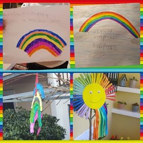 τόξο. Ο αρχικός στόχος μας, να ομορφύνουμε την αυλή μας, να τη διακοσμήσουμε με χρώματα και σχήματα πολλά, δεν πραγματοποιήθηκε λόγω καραντίνας κι έτσι προτρέψαμε τα παιδιά να ζωγραφίσουν, να κατασκευάσουν, να δημιουργήσουν, να παίξουν και να χρωματίσουν... Ένα ουράνιο τόξο τοποθετήθηκε σε αυλές και μπαλκόνια, για να μπορούν να το βλέπουν