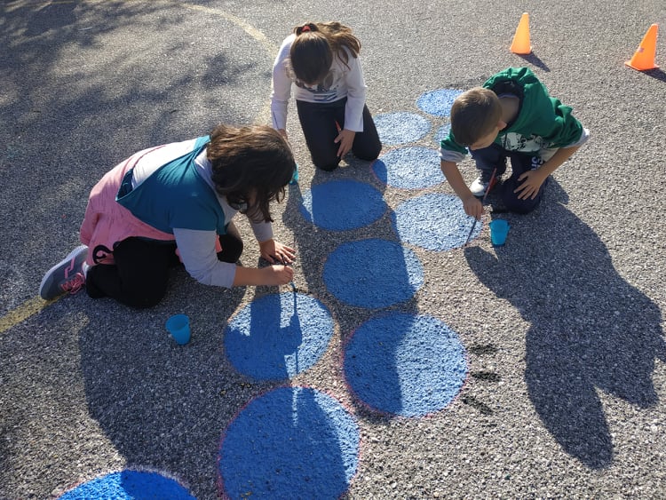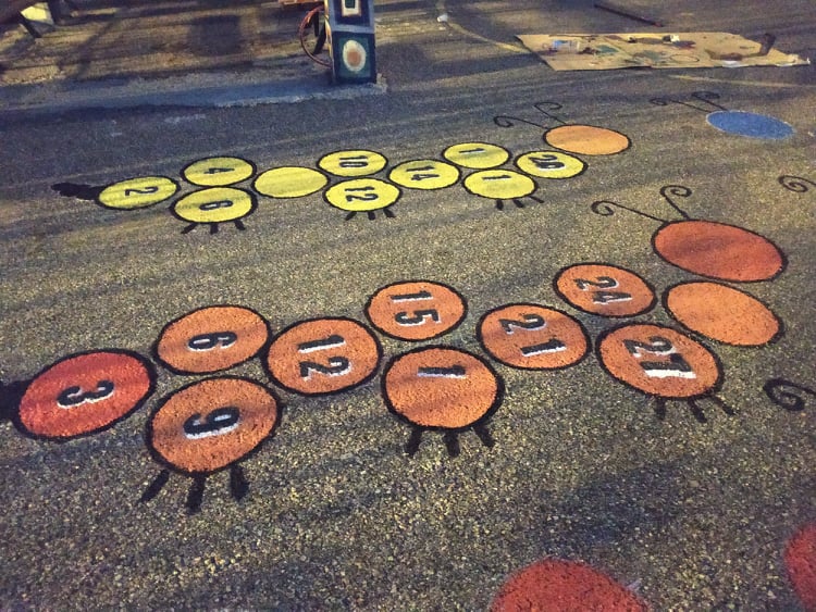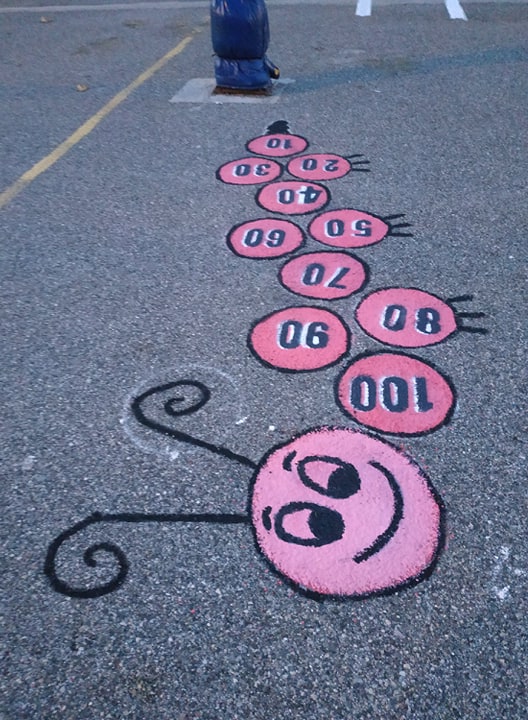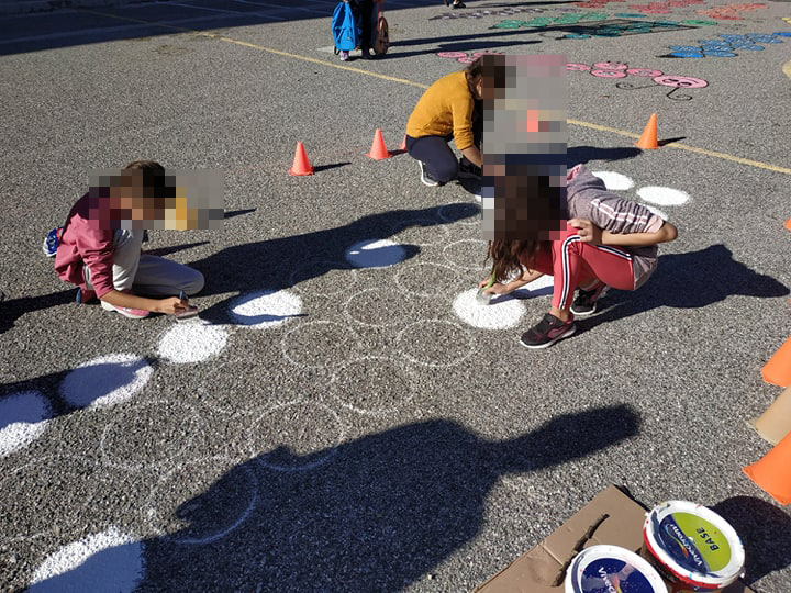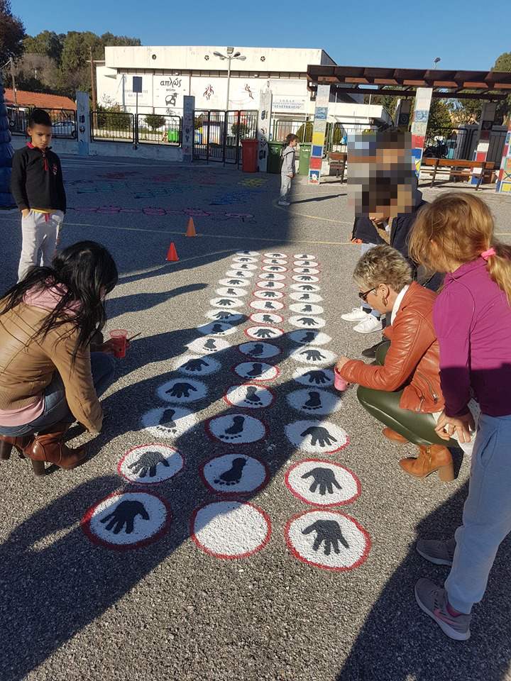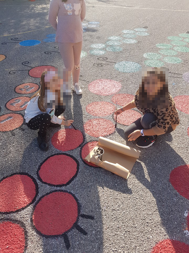 σχεδιάζοντας και ζωγραφίζοντας επιδαπέδια παιχνίδια στην αυλή του