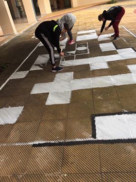 Κατασκευή διαφόρων παραδοσιακών παιχνιδιών στην σχολική αυλή με υλικά τα οποία προσέφεραν οι γονείς των μαθητών.