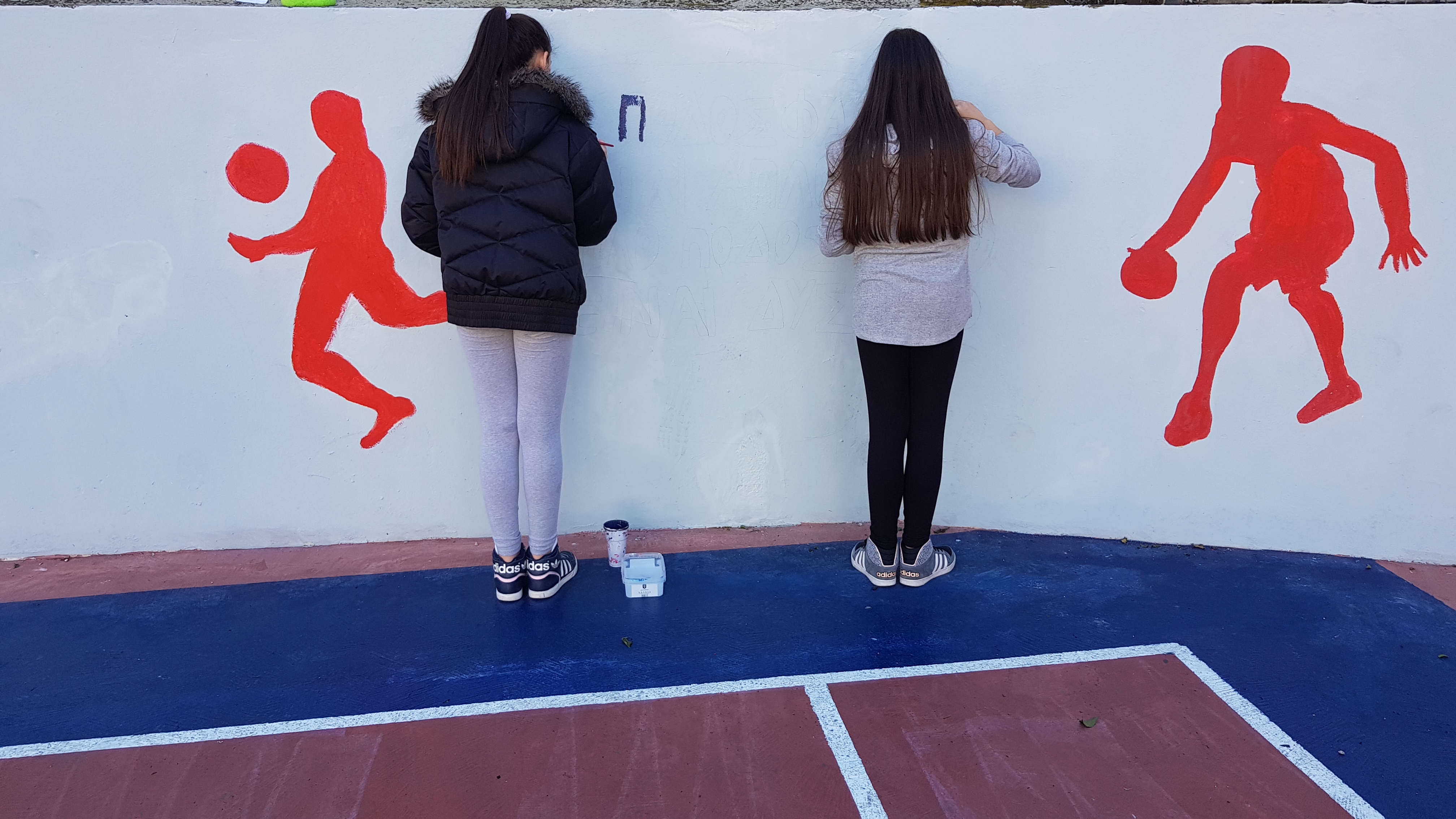 Φέτος στο σχολείο μας προσπαθήσαμε όλοι μαζί να βελτιώσουμε το χώρο και να τον καλλωπίσουμε. Οι μαθητές του προγράμματος σε συνεργασία με την καθηγήτρια των εικαστικών κ. Παραστατίδου Ελένη Σοφία, αποφάσισαν να στολίσουν τους τοίχους που περιβάλλουν το γήπεδο καλαθοσφαίρισης, με φιγούρες που ασκούνται και με αποφθέγματα που αφορούν τον αθλητισμό και τα αθλήματα. Ασχολήθηκαν πάνω από ένα μήνα με τις δράσεις αυτές (Φεβρουάριος - Μάρτιος 2020) και τελικά έδωσαν στο χώρο μια νέα αίσθηση. Τους ευχαριστούμε!