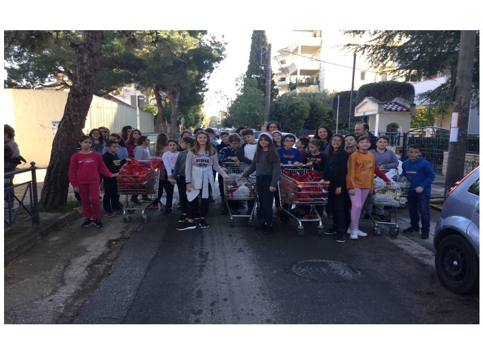 Στόχος Νοιάζομαι και δρω για τους συμπολίτες μου του προγράμματος ΕΝ.ΕΠΟΛΙΣ (Ενεργός Πολίτης) του σχολείου μας. Γονείς και παιδιά ανέλαβαν να στρώσουν το χριστουγεννιάτικο τραπέζι σε ευπαθείς ομάδες του Χαλανδρίου. Οι μαθητές της ΣΤ έφτιαξαν και διακόσμησαν πακέτα με 1.800 μελομακάρονα. Την δράση πλαισίωσαν με γαλοπούλες κα κρασιά ο Σύλλογος Γονέων. Οι μαθητές με γονείς και εκπαιδευτικούς μετέφεραν τα εδέσματα στο Κοινωνικό Παντοπωλείο του Δήμου Χαλανδρίου.