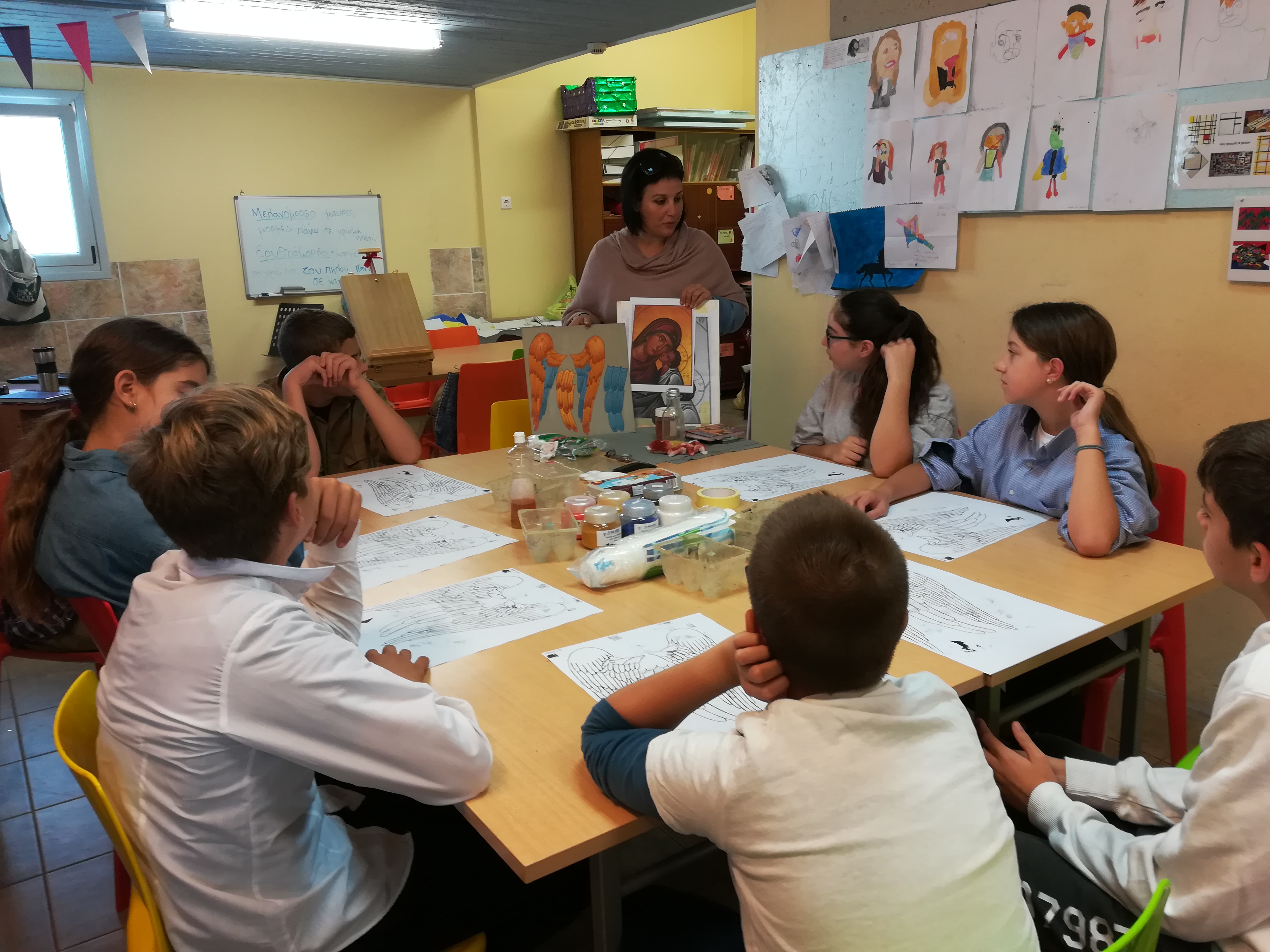 Μετά από ενημέρωση των γονέων για το πρόγραμμα Νοιάζομαι και Δρω, η μητέρα ενός μαθητή μας δέχτηκε με χαρά να δείξει στους μαθητές μας την τέχνη της Βυζαντινής Αγιογραφίας.