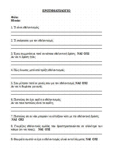 Δημιουργία ερωτηματολογίου για τον Εθελοντισμό
