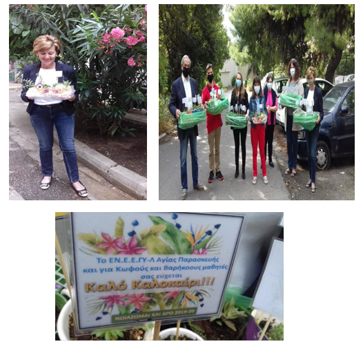 Ομάδα γονέων, εκπαιδευτικών, μαθητών, της Διευθύντριας του Σχολείου και της συντονίστριας του προγράμματος ΝΟΙΑΖΟΜΑΙ ΚΙ ΔΡΩ κας Πετρίδου Βαρβάρας επισκέφθηκαν το Δημοτικό Γηροκομείο Αθηνών και πρόσφεραν χειροποίητους μικρόκηπους και γλαστράκια από ανακυκλώσιμα υλικά και πολλές ευχές για υγεία και καλό καλοκαίρι.