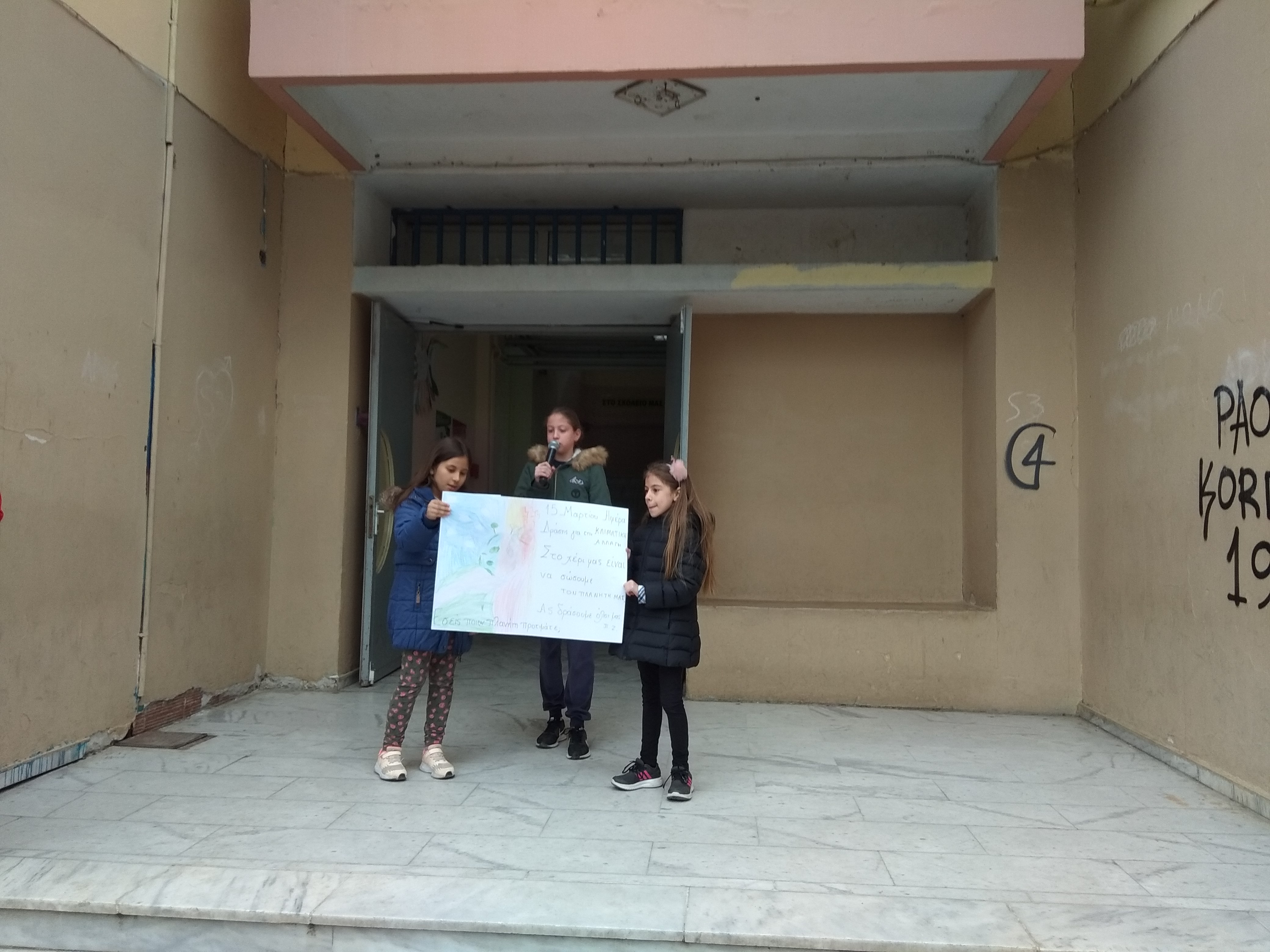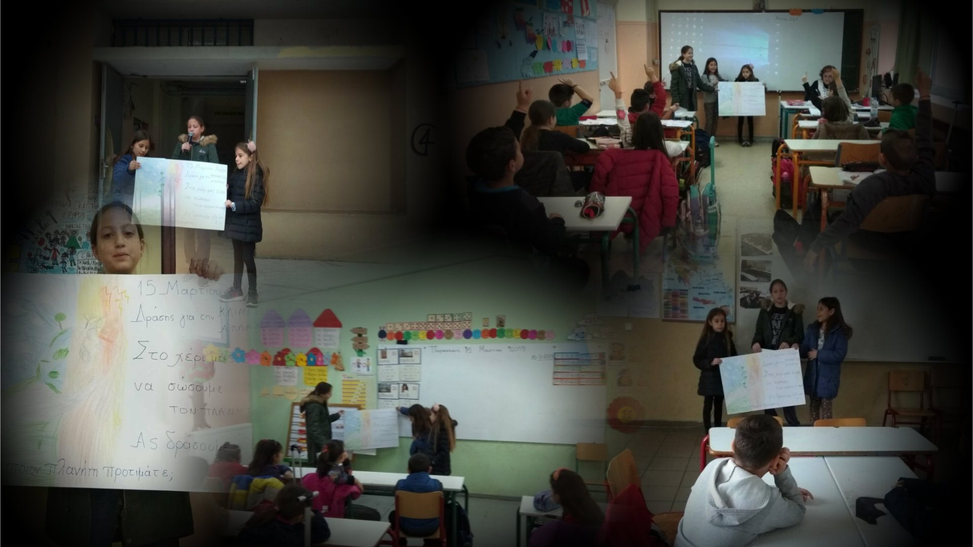 Κατόπιν, πέρασαν από τις τάξεις και  έκαναν μια μικρή συζήτηση με τους/τις συμμαθητές/ήτριες τους για τις αιτίες και τις συνέπειες της κλιματικής αλλαγής.