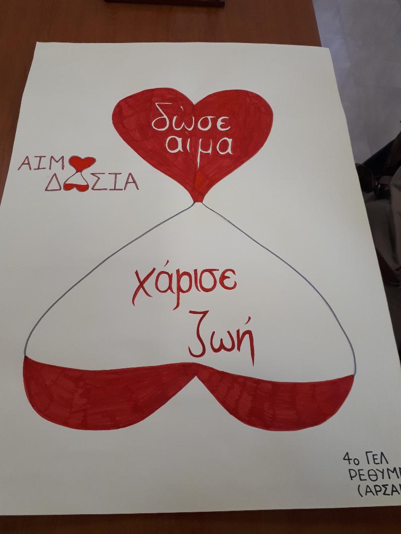 Μια μοναδική εμπειρία ζήσαμε οι μαθητές , οι γονείς και οι εκπαιδευτικοί του 4ου ΓΕΛ Ρεθύμνου που βρεθήκαμε στο Γυμναστήριο του Πανεπιστημίου Κρήτης στο Ρέθυμνο το περασμένο Σαββατοκύριακο. Στα πλαίσια της δράσης <<Βάλε το Τρίποντο της Ζωής>> που υλοποιούμε σε συνεργασία με το 16ο Δημοτικό και το Πειραματικό Γυμνάσιο Ρεθύμνου , οι μαθητές μας ενημερώθηκαν από το Σύλλογο Αιμοδοτών Ν. Ρεθύμνου <<Δότες Ζωής>> και στην συνέχεια οι ίδιοι ενημέρωσαν τον κόσμο που ήταν εκεί και πήραν δείγμα μυελού των οστών. Με ενθουσιασμό περιμένουν να συμμετάσχουν τη β φάση της δράσης όπου θα γίνει και αιμοληψία.