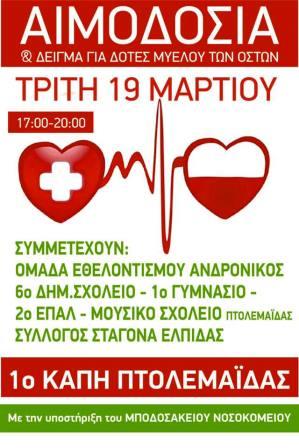 «ΕΘΕΛΟΝΤΙΣΜΟΣ ΑΝΔΡΟΝΙΚΟΣ» - ΑΙΜΟΔΟΣΙΑ ΚΑΙ ΔΟΤΕΣ ΜΥΕΛΟΥ ΤΩΝ ΟΣΤΩΝ ΜΕ ΕΘΕΛΟΝΤΕΣ ΤΟΝ ΣΥΛΛΟΓΟ ΓΟΝΕΩΝ ΚΑΙ ΚΗΔΕΜΟΝΩΝ ΤΟΥ 6ου ΔΗΜΟΤΙΚΟΥ ΣΧΟΛΕΙΟΥ ΠΤΟΛΕΜΑΪΔΑΣ