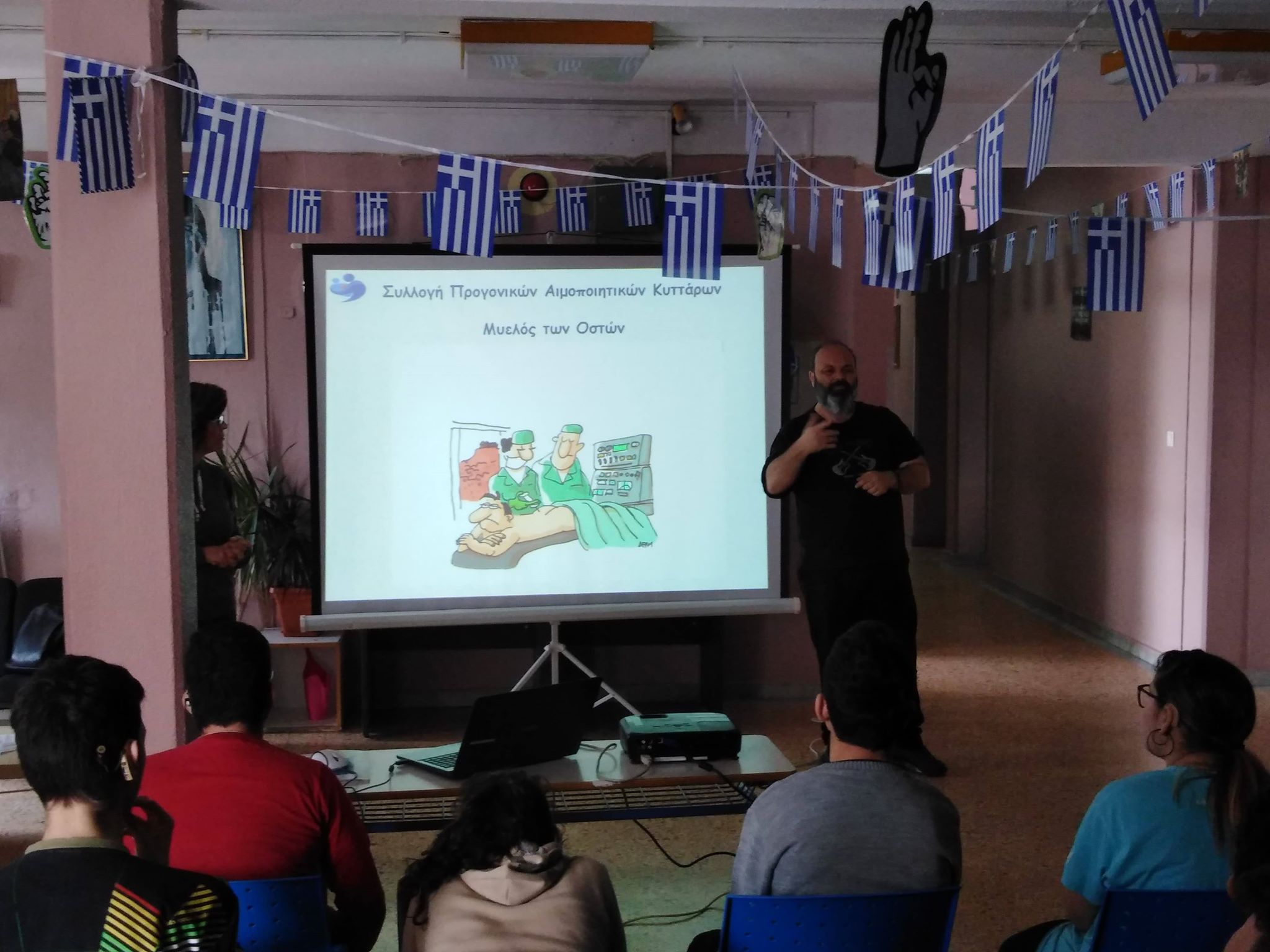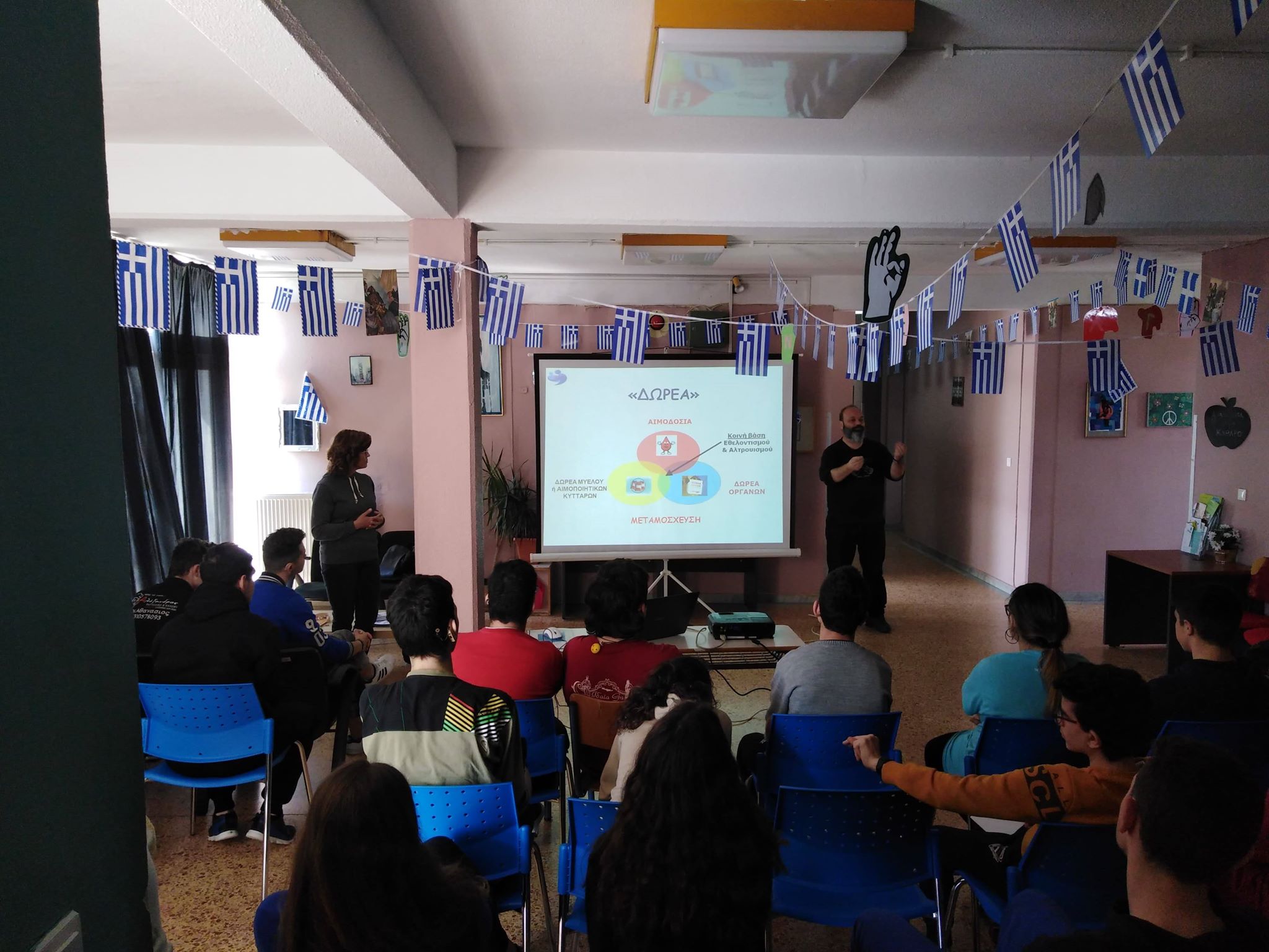 Στο πλαίσιο της ενημέρωσης και ευαισθητοποίησης των μαθητών και του συλλόγου διδασκόντων για τη Δωρεά Μυελού των Οστών, επισκέφτηκε το σχολείο μας η κ. Δήμητρα Ζαχαρούδη, συντονίστρια του τμήματος μεταμοσχεύσεων του νοσοκομείου ΑΧΕΠΑ. Μας ενημέρωσε για την αναγκαιότητα και τη διαδικασία της δωρεάς, με παράλληλη διερμηνεία στην Ελληνική Νοηματική Γλώσσα, και απάντησε στις ποικίλες ερωτήσεις των μαθητών που έδειξαν ιδιαίτερο ενδιαφέρον. Στη συνέχεια, παρακολουθήσαμε animation video για τη Δωρεά Μυελού των Οστών καθώς και Video με αληθινές ιστορίες που εκτυλίχτηκαν μεταξύ δωρητών και ληπτών.