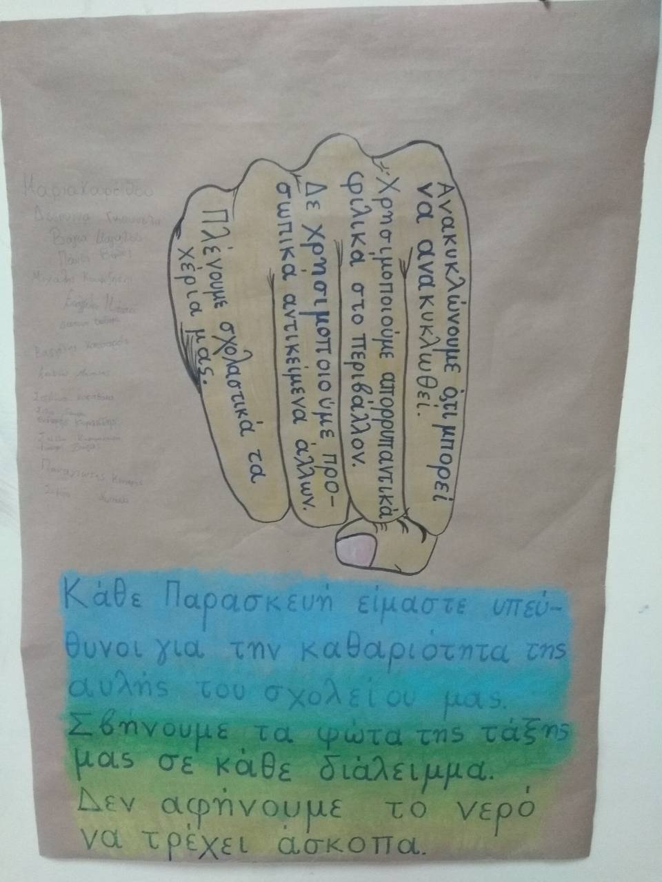 Οι μαθητές και οι μαθήτριες του Στ'1, μαζί με τη δασκάλα τους κα Ζωή Καρανικόλα, δεσμεύτηκαν να βάλουν ένα λιθαράκι στη προστασία του περιβάλλοντος τηρώντας τα εξής: