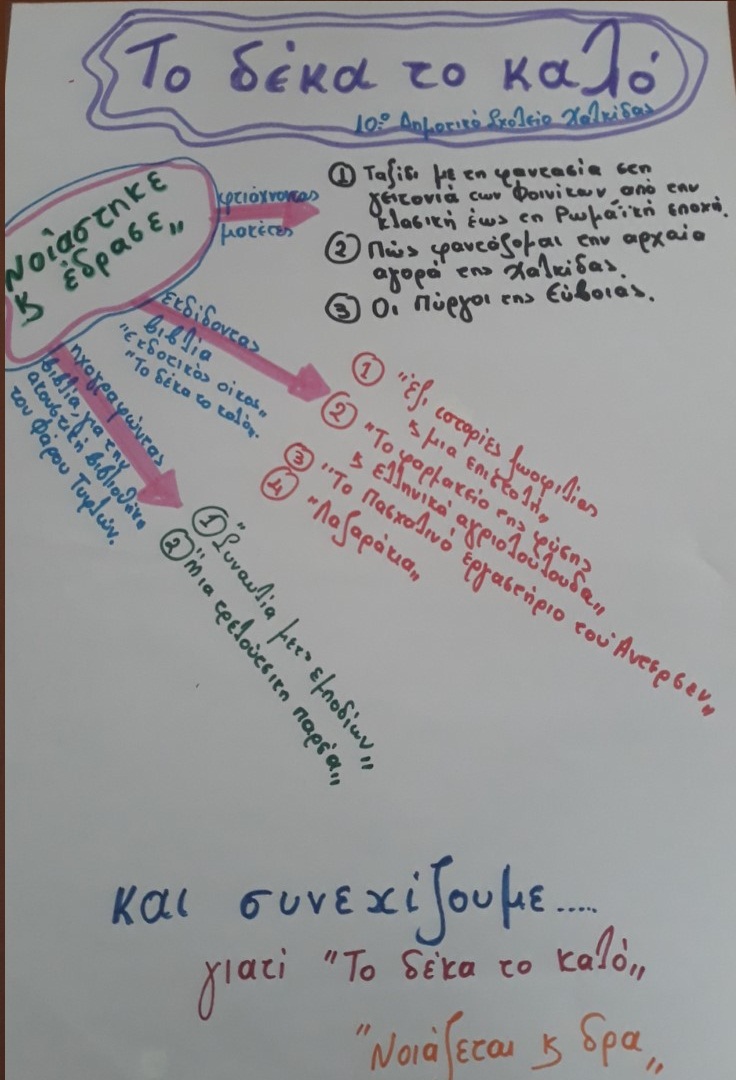 Το σχολείο μας (10ο δημοτικό) συμμετέχει στις εργασίες με παρουσίαση των τριών χρόνων του προγράμματος "Νοιάζομαι και Δρω"( και συγκεκριμένα του άξονα πολιτισμού) στην έκθεση υλικού των σχολείων. Θα παρουσιαστούν οι μακέτες, τα βιβλία των παιδιών, εργασίες στη γραφή Braille (δώρο προς το ειδικό νηπιαγωγείο) και τα κοστούμια της φετινής θεατρικής παράστασης, την οποία ανεβάζουν τα παιδιά προς ενίσχυση της σχολικής βιβλιοθήκης.