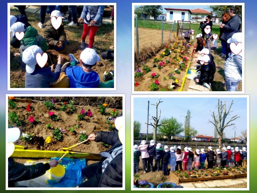αυλή , φυτέψαμε λουλουδάκια , δώσαμε χρώμα στα παρτέρια .Στη συνέχεια ο