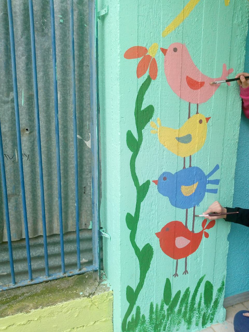 Τα νηπιάκια μαζί με τους μαθητές του δημοτικού και με την σημαντική συμβολή της κυρίας Σοφίας και της κυρίας Ελένης,πήραν τα πινέλα και ξεκίνησαν να ζωγραφίζουν πουλιά το ένα πάνω στο άλλο για να καταφέρουν να φτάσουν να μυρίσουν το πρώτο λουλούδι της άνοιξης.