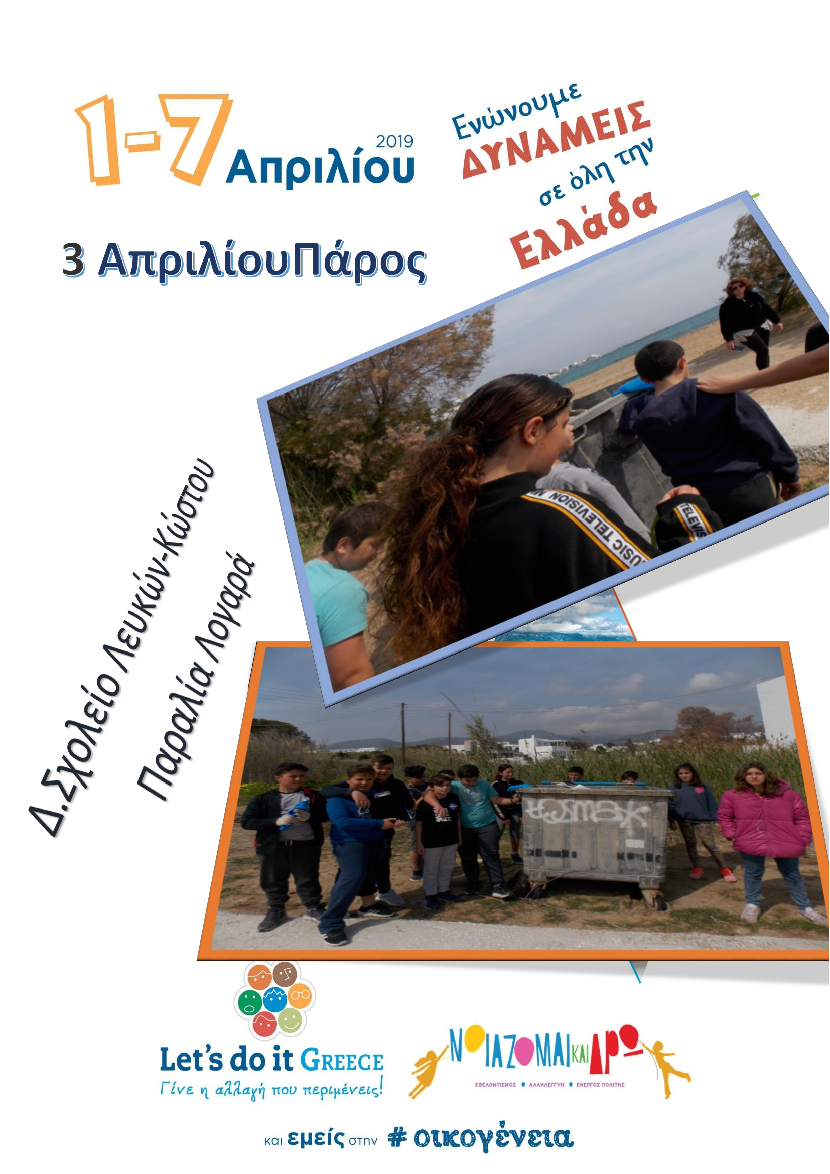 Στο πλαίσιο της συμμετοχής του σχολείου μας στη σχολική εβδομάδα εθελοντισμού και στη δράση let's do it Greece, την Τετάρτη 3 Απριλίου αναλάβαμε δράση . Σε συνεργασία με το Σύλλογο Γονέων και Κηδεμόνων του σχολείου μας καθαρίσαμε την παραλία του Λογαρά καθώς και την παραλία της Πούντας.