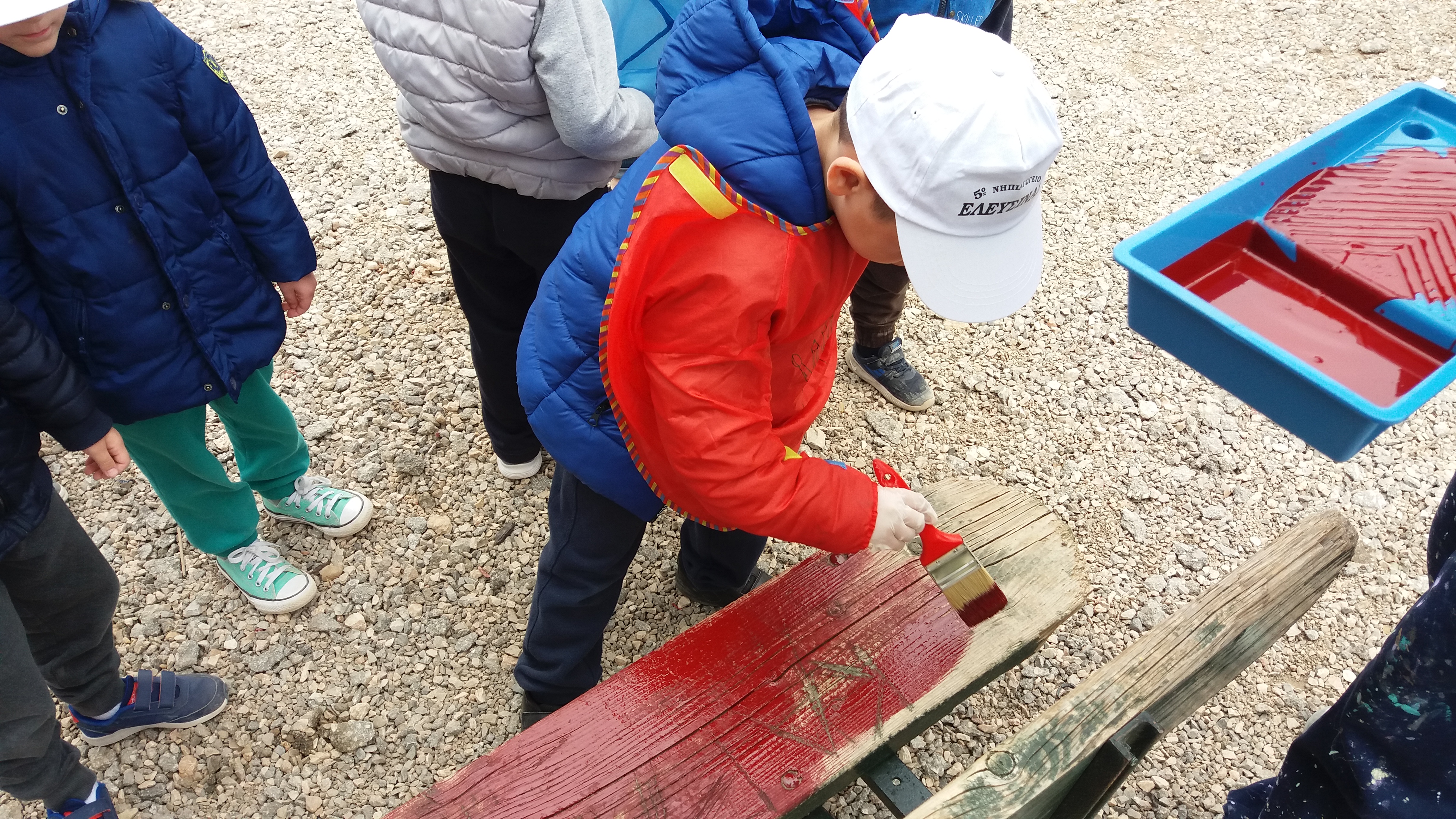Την Παρασκευή 5 Απριλίου 2019 με τη βοήθεια των Εθελοντών Θριασίου Πεδίου και μίας εθελόντριας του Φεστιβάλ Αισχυλείων πήγαμε στο πάρκο σκύλων του Δήμου Ελευσίνας, όπου με τη συνδρομή της αρμόδιας υπηρεσίας πρασίνου και της υπεύθυνης κυρίας Α. Σαρρηγιαννίδη φυτέψαμε 4 δεντράκια και 4 φυτά και βάψαμε τα παγκάκια και τα τραπεζάκια που υπήρχαν εκεί.