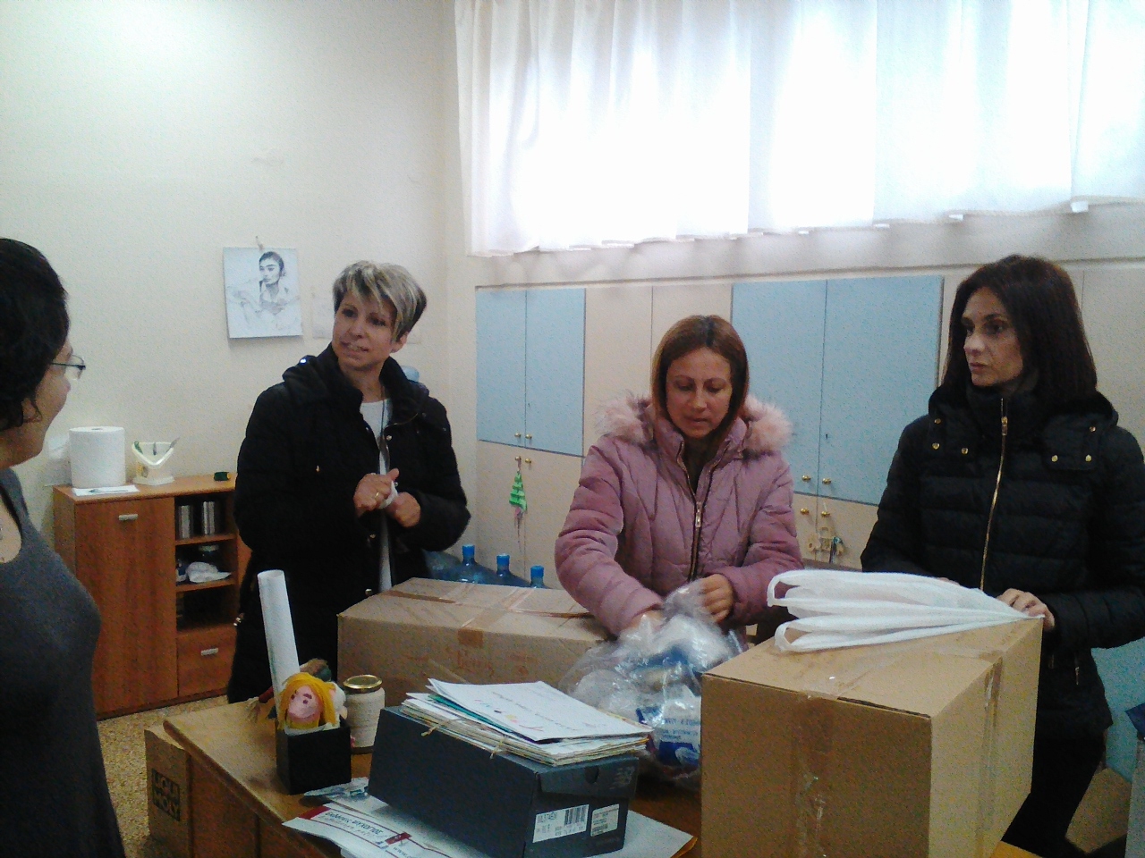 Τα είδη που συγκεντρώθηκαν ομαδοποιήθηκαν με τη βοήθεια των εθελοντών γονέων και συσκευάστηκαν σε κούτες ανά είδος. Οι μαθητές πρώτα έδωσαν από ένα βραβείο εθελοντή στις μητέρες που βοήθησαν στη συσκευασία και στη συνέχεια ζωγράφισαν και έγραψαν το περιεχόμενο της κάθε κούτας.