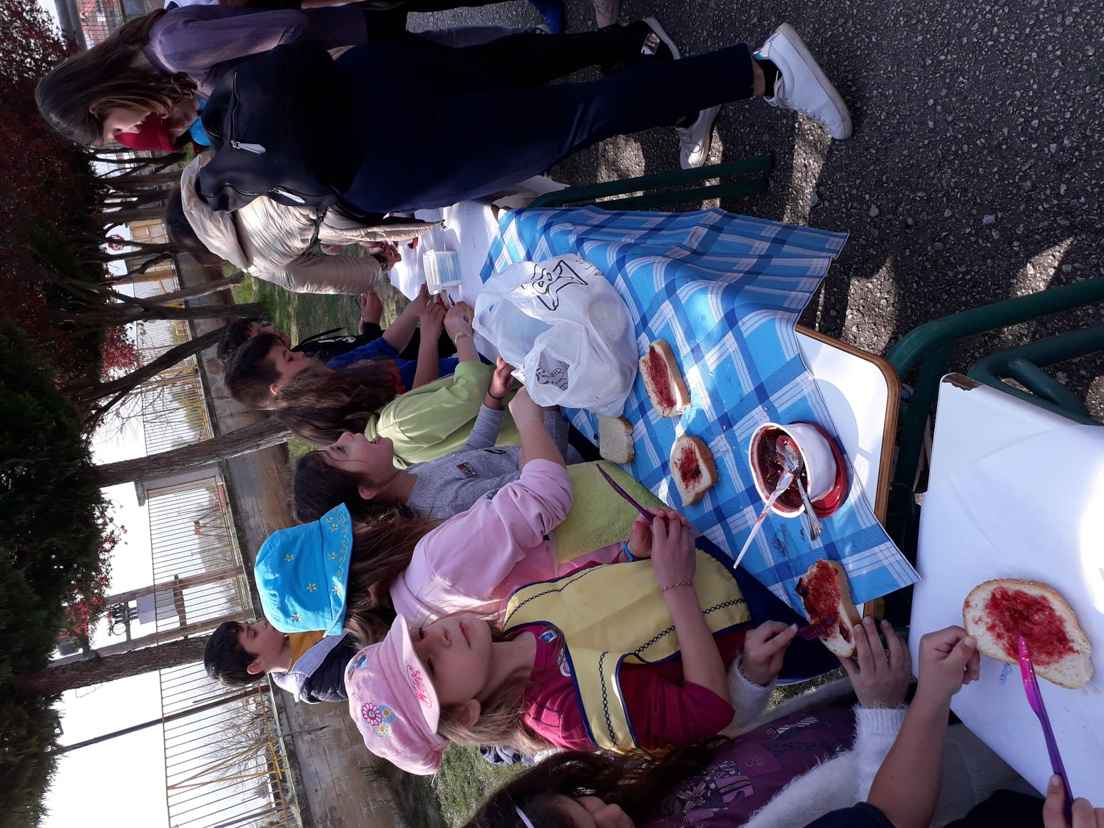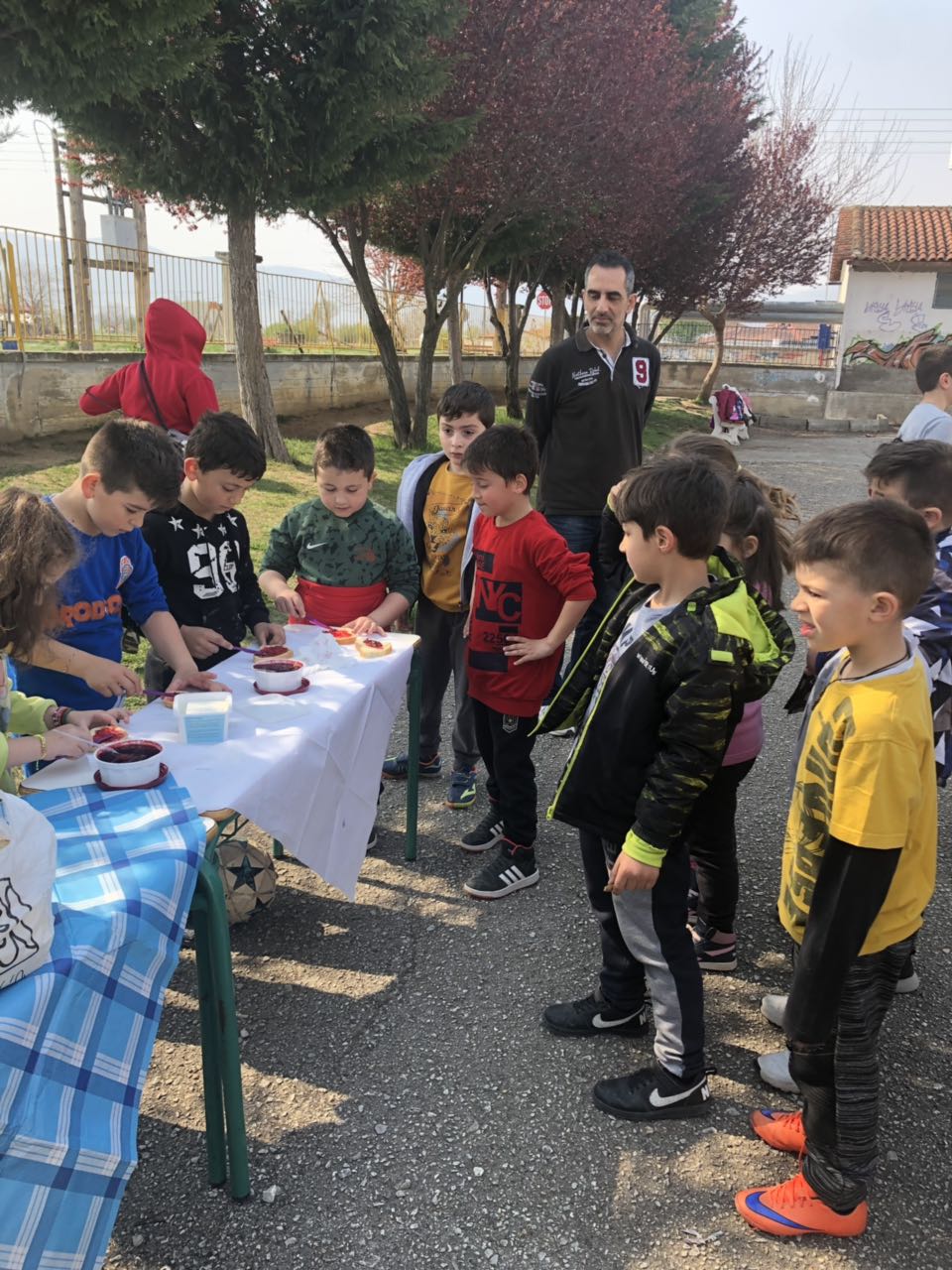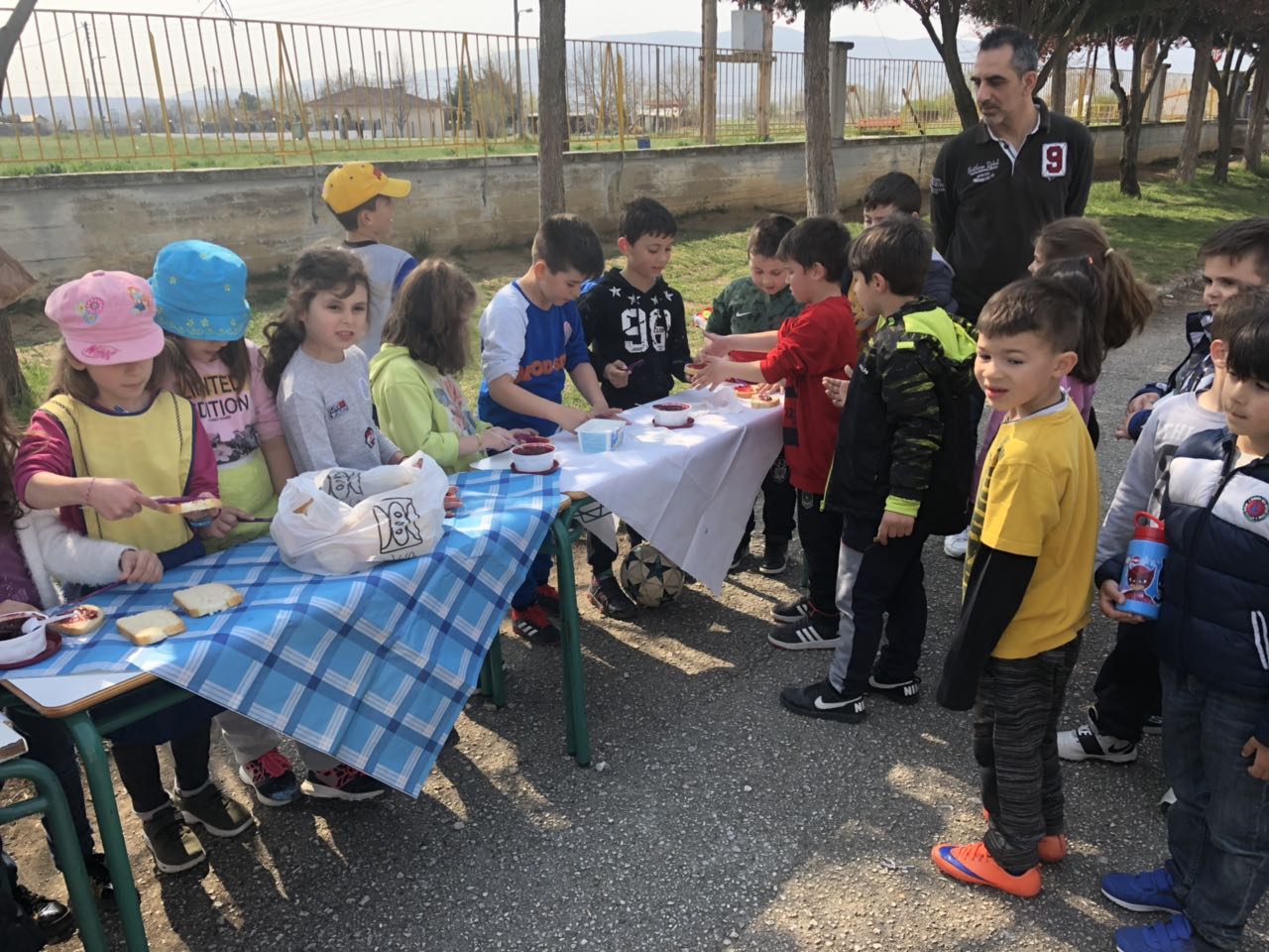 Οι μαθητές της β΄τάξης του σχολείου μας αποφάσισαν να ετοιμάσουν και να προσφέρουν με ιδιαίτερη χαρά και αγάπη δεκατιανό γεύμα στους υπόλοιπους συμμαθητές τους. Τα τραπέζια στρώθηκαν στην αυλή προς έκπληξη όλων . Οι μαρμελάδες και η φέτα-τυρί παρέα με το ζεστό ψωμί είχαν την τιμητική τους.