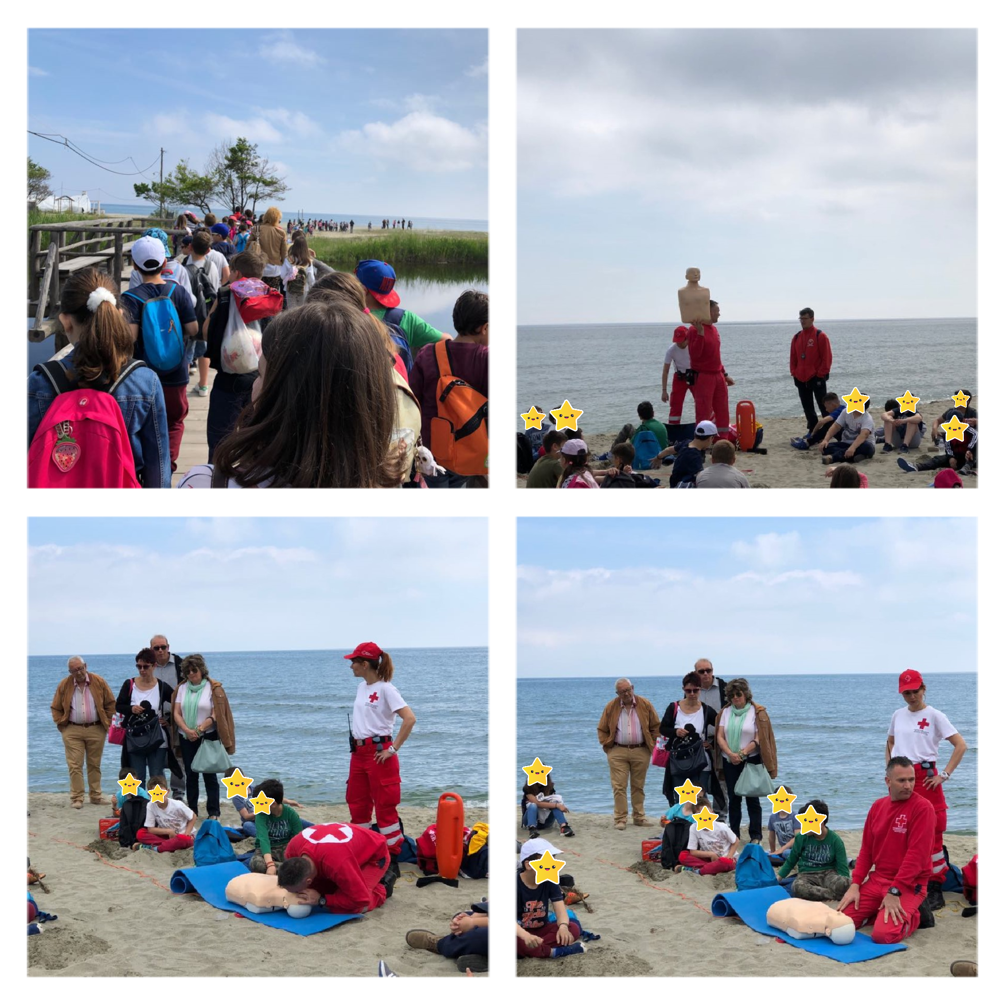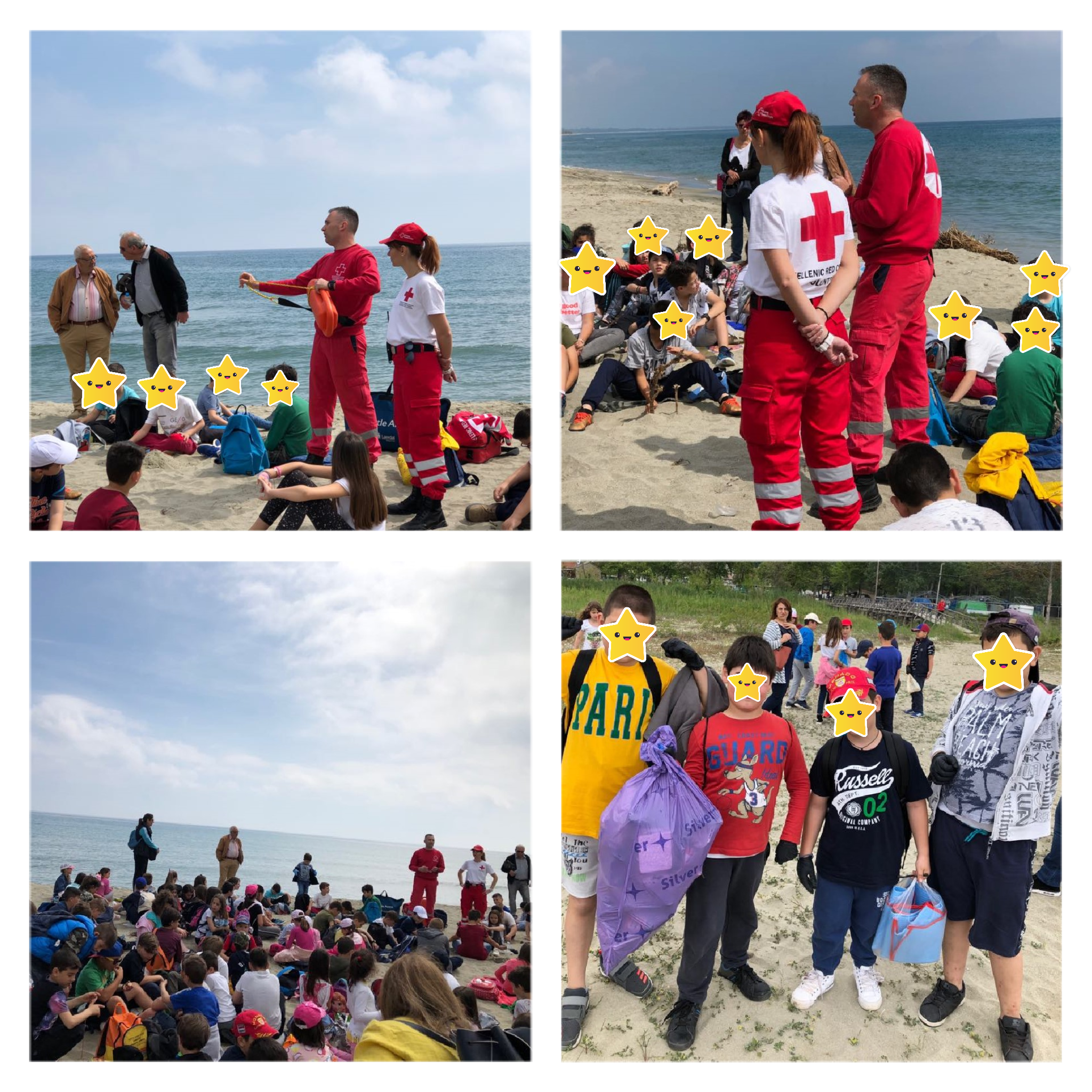 Στην παραλία μάς συνόδεψαν μέλη του Ελληνικού Ερυθρού Σταυρού και συγκεκριμένα, στελέχη του τομέα Σαμαρειτών, Διασωστών και Ναυαγοσωστών, οι οποίοι ανέπτυξαν θέματα που αφορούσαν την ασφάλεια στο νερό, μίλησαν για την καρδιοαναπνευστική αναζωογόνηση, καθώς και για βασικές αρχές Πρώτων Βοηθειών.
