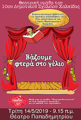 Οι εθελοντές του 10ου Δημοτικού Σχολείου Χαλκίδας την Τρίτη 14 Μαΐου, οργάνωσαν στο θέατρο Παπαδημητρίου της πόλης τους τη θεατρική παράσταση  "Bάζουμε