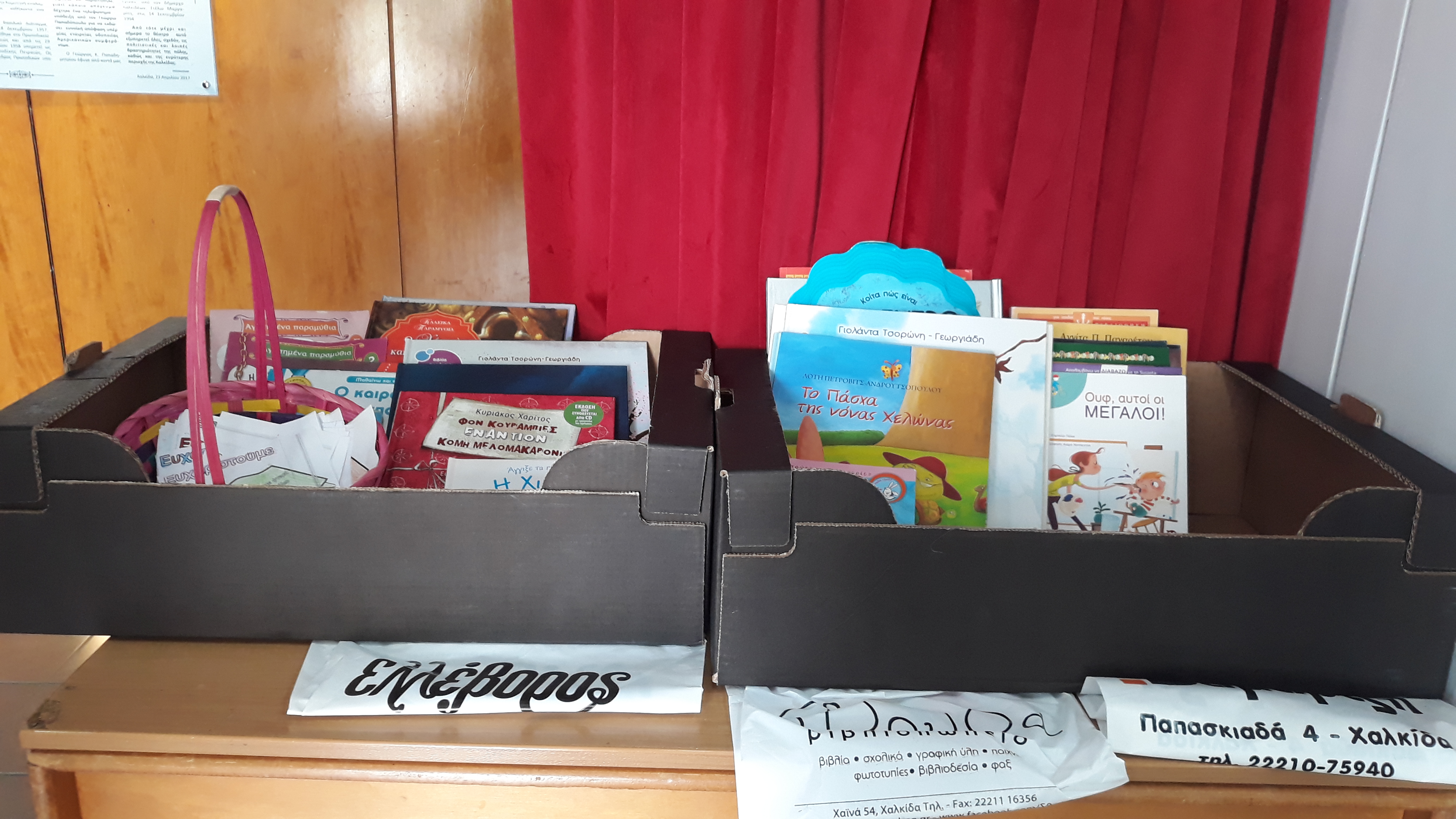 για την ανάδειξη του αρχαίου θεάτρου  στις Αχαρνές. Ο σκοπός ήταν να συγκεντρωθούν βιβλία για τη βιβλιοθήκη του σχολείου μας και τη βιβλιοθήκη του Ειδικού Νηπιαγωγείου Χαλκίδας. Ο στόχος  επετεύχθη, καθώς η ανταπόκριση του κόσμου ήταν μεγάλη και συγκεντρώθηκαν περίπου 70  τίτλοι βιβλίων!